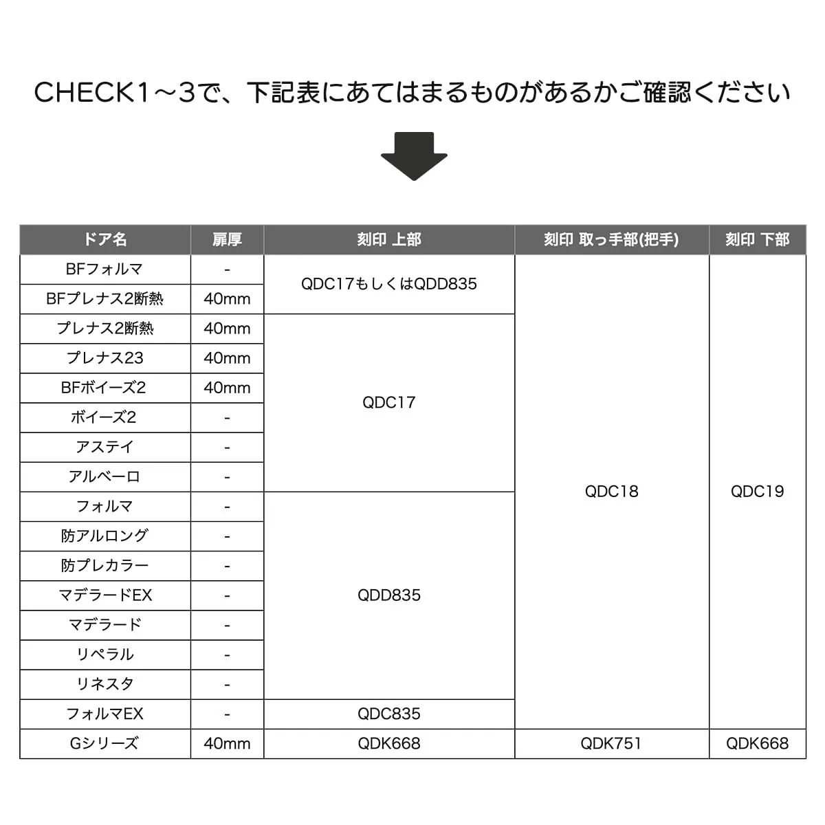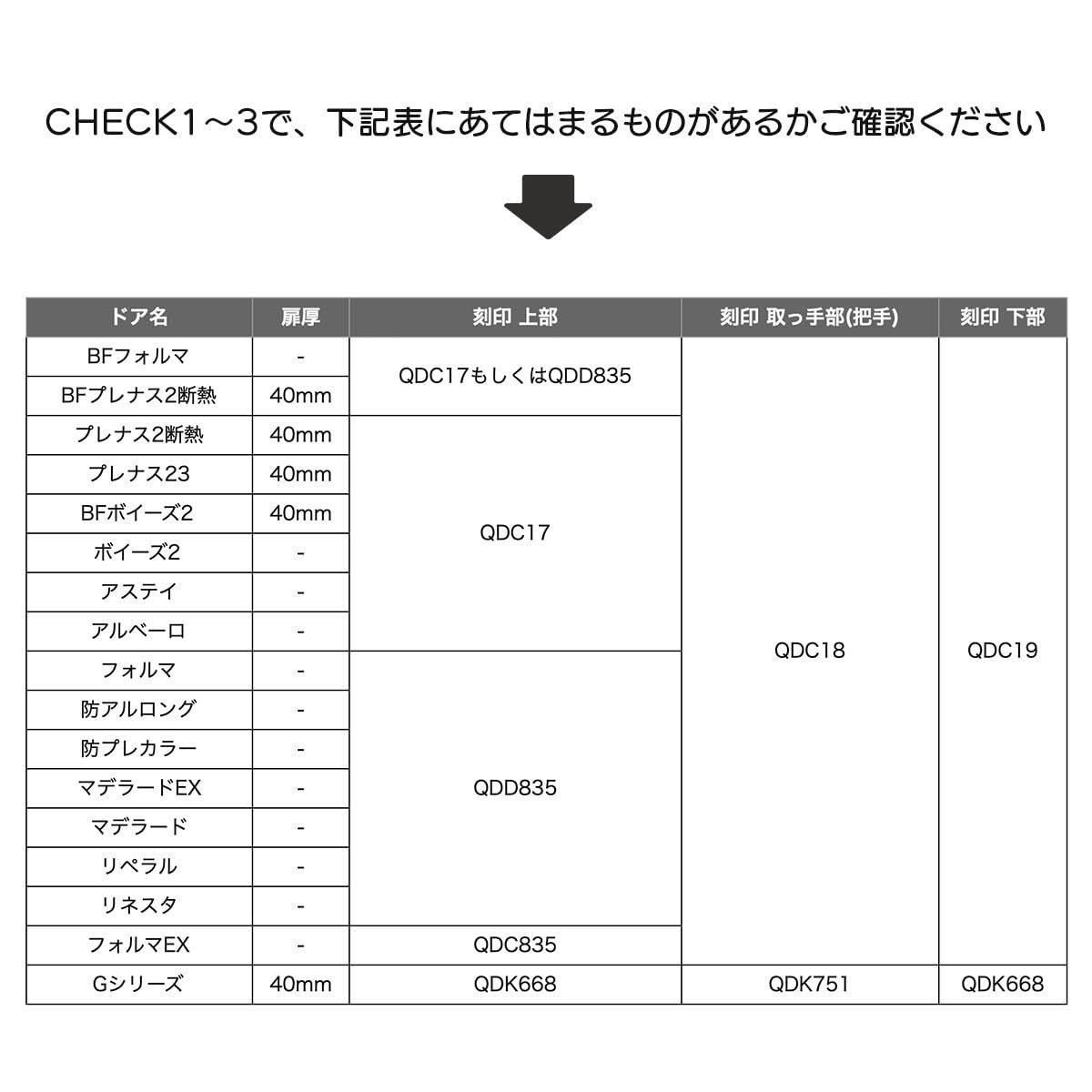 【適合刻印】QDC17 QDC18 QDC19 QDD835 QDC835 QDK668 QDK751 ※刻印やドア名だけで交換適合の有無は判断できないので、画像のチェックポイントをご確認ください。