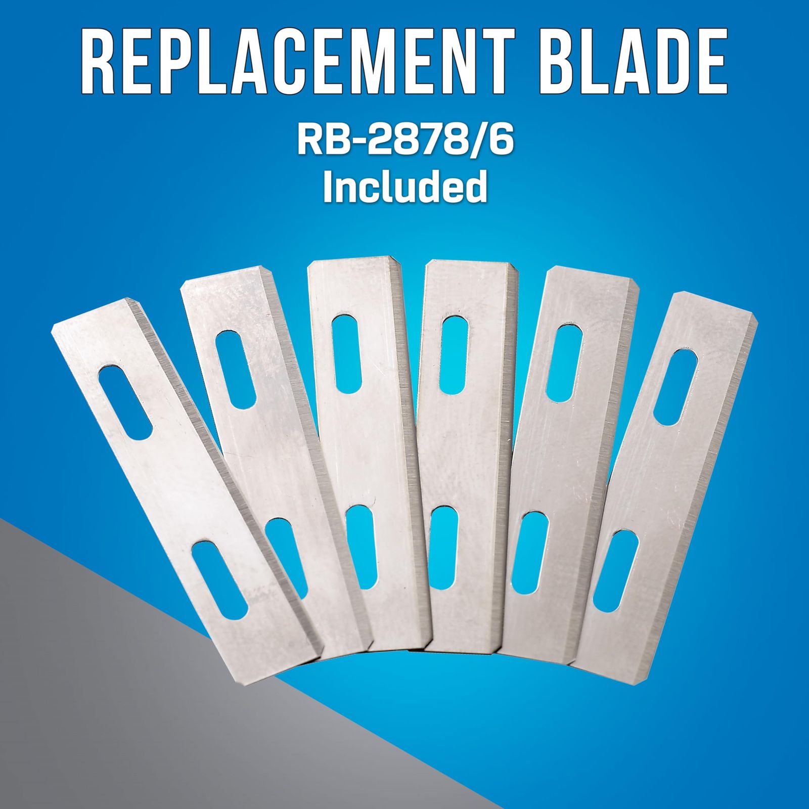 L字型の硬化鋼ガイドとブレードガードにより、ブレードをバッファーの下に入れてスリットを入れることができます