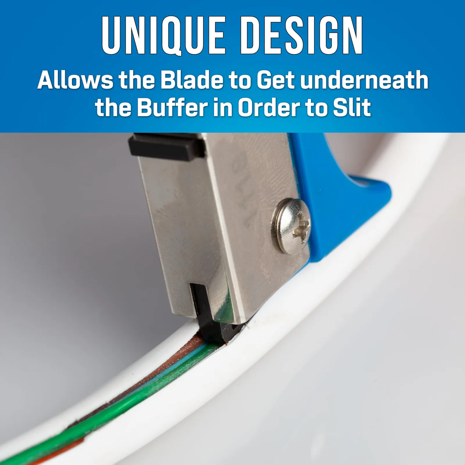 多くの種類のタイトバッファー、ルースチューブバッファー、ブレイクアウトケーブル、およびその他のタイプのジャケット付きファイバーケーブルをスリットおよびリングするように設計されています L字型の硬化鋼ガイドとブレードガードにより、ブレードをバッファーの下に入れてスリットを入れることができます プラスチック、ゴム、または布絶縁介して工具カット0.031a(0.787ミリメートル)又は0.018で被覆」のリンガ部(0.457ミリメートル)厚さ リンガーは、直径3/16-1/2(4.7 mm-12.7 mm)のケーブルで使用できます。 交換用ブレード1枚付き