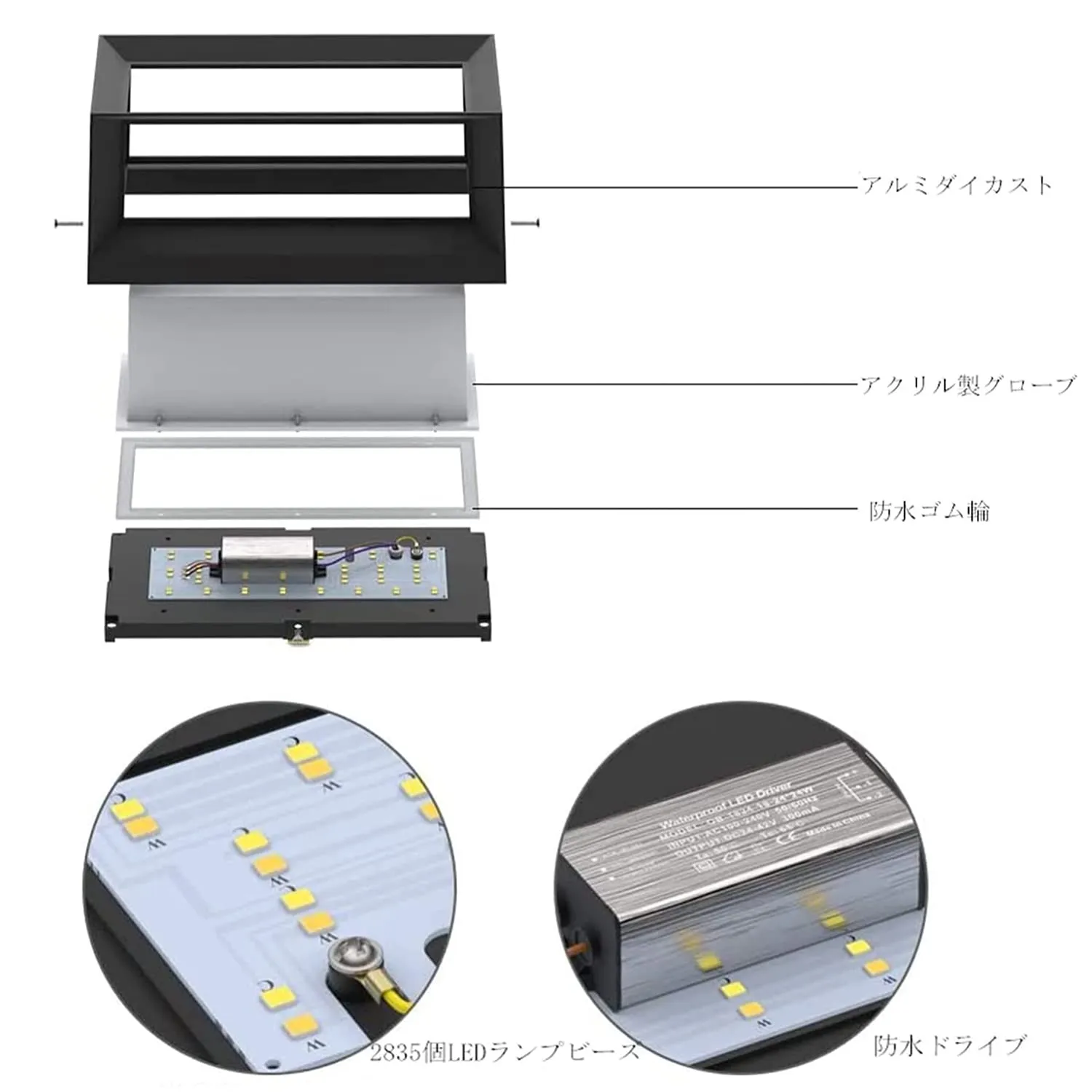 【IP65防水・室内外照明用】IP65級防水材料を採用した、高等級の防水性を持たせているので全天候が対応できます。(*防水ですが、完全に水に沈むと、壊れる可能性もあります。)