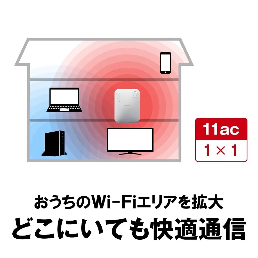 【部屋の隅々まで高速安定通信】11ac対応・2つの通信帯域のデュアルバンドで複数の機器も高速・安定通信。