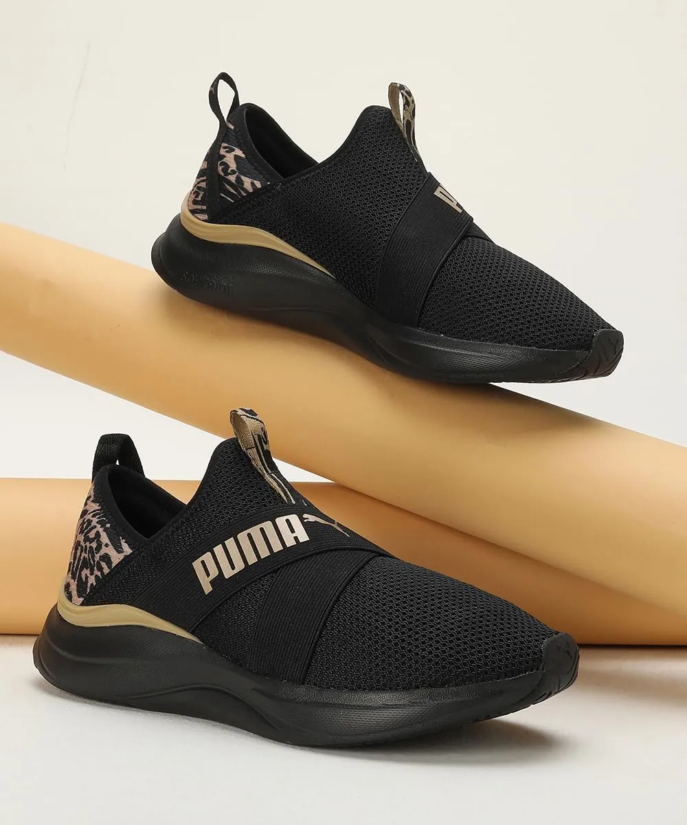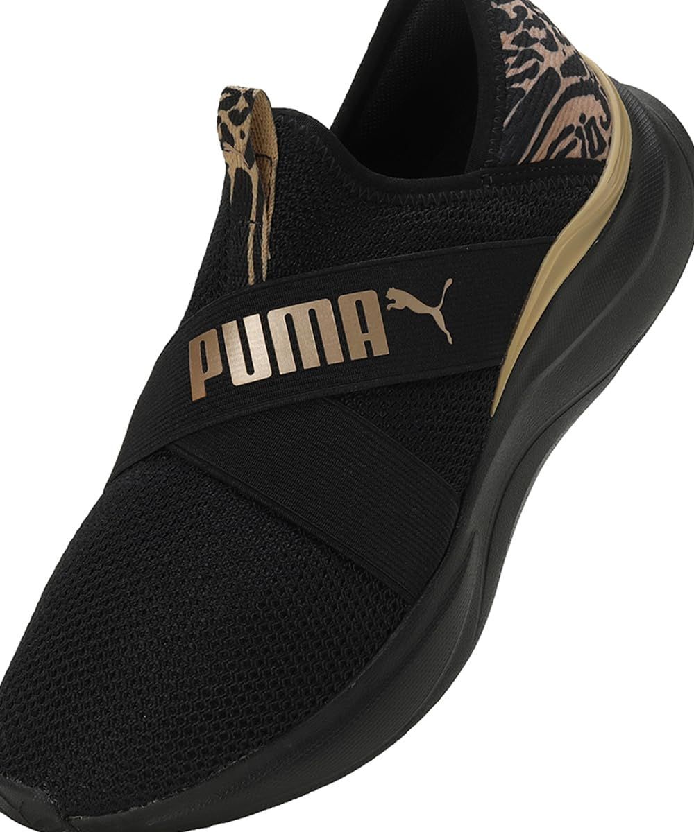「楽ふわっ」な履き心地で一日中快適さが続く、ソフトライドシリーズのファッショナブルなスニーカー柔らかく通気性のよいメッシュアッパーにゴールドロゴやレパード柄を採用し、スポーティさとエレガントなムードをブレンド衝撃吸収性に優れたSOFTFOAM+フットベッドやSOFTRIDEミッドソールを搭載し、ふんわり柔らかな履き心地ですまたゾーンラバーアウトソールを採用し、軽量性を維持しながら安定性とトラクションを確保スリッポンならではの着脱のしやすさも魅力です軽く柔らかな履き心地で、タウン履きやウォーキング、ご旅行など幅広く活躍します