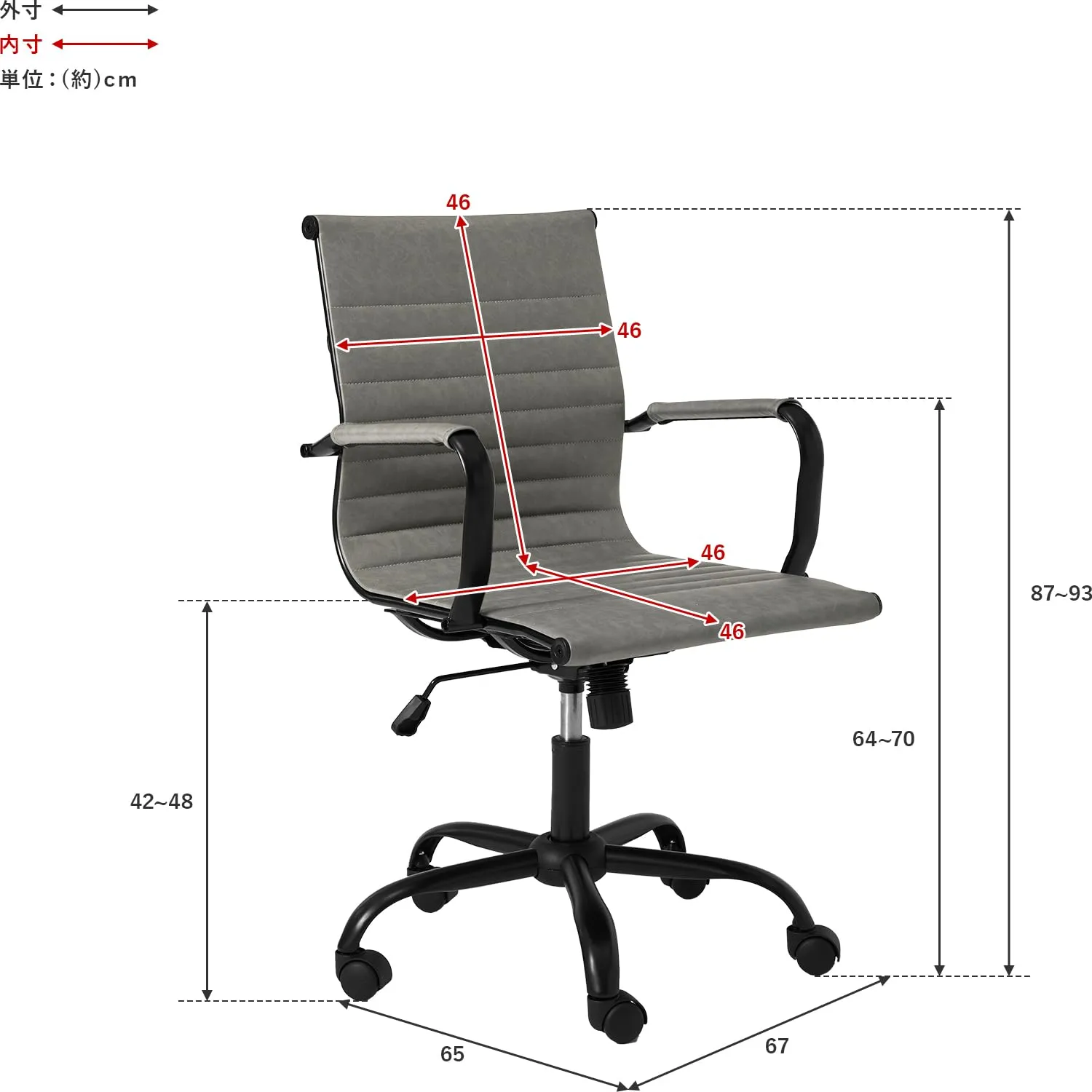【商品サイズ(約)】幅67×奥行65×高さ87~93cm