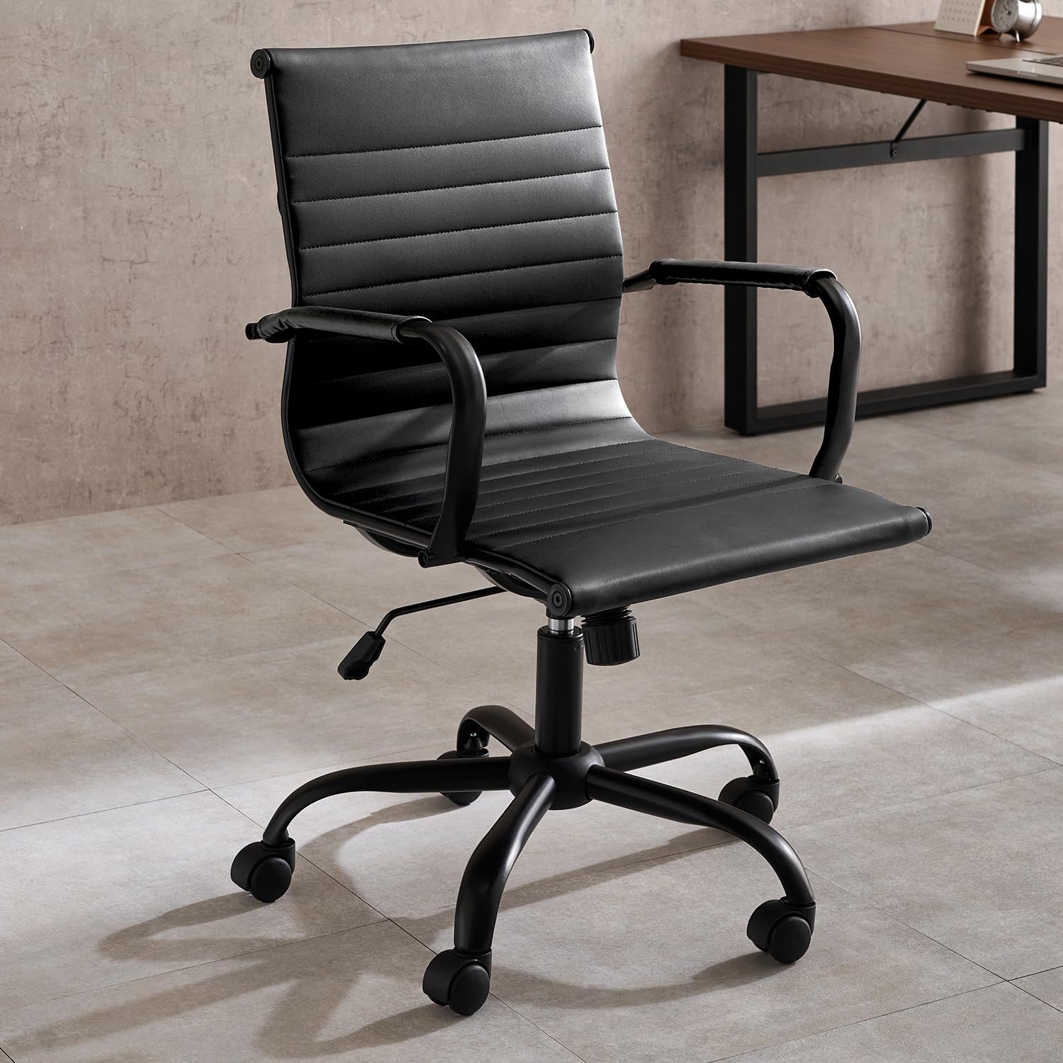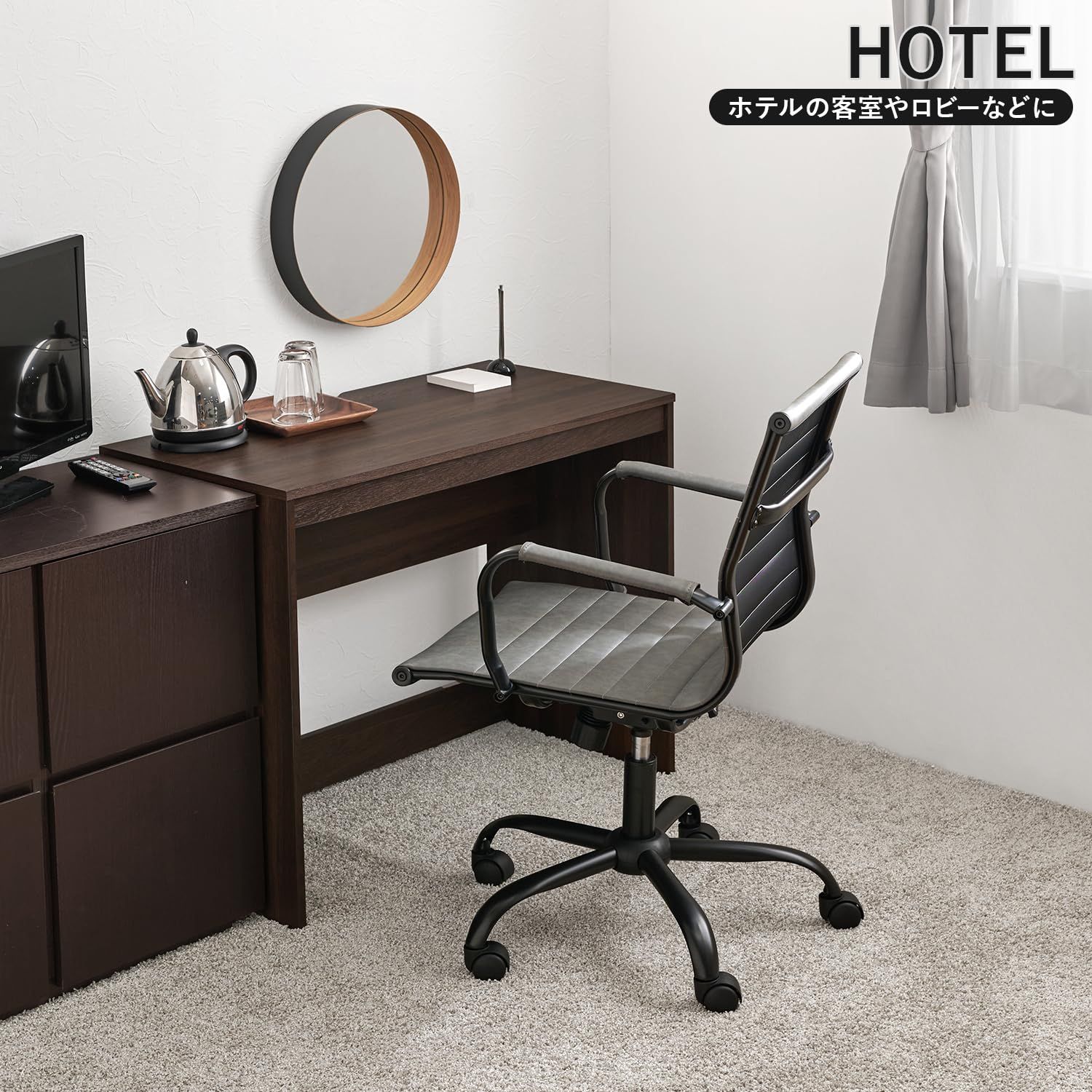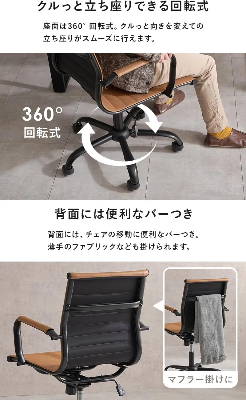 デスクを格上げする、男前チェア。スリム&スタイリッシュなデザインなので、ワークスペースに高級感が生まれます。