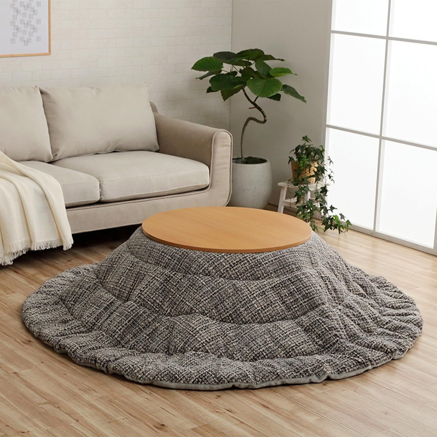 あたたかみのあるカラーを使用したこたつ布団です。 表地は凸凹感を持たせボコボコとしたタッチ感が特徴です。裏地にはなめらかな肌触りのフランネルを使用しています。 薄手なので折りたたんでもかさばらず、コンパクトに収納できます。 布団の内側に紐をつけることにより、布団と台がずれないようにしました。 4色展開 こたつの特徴として、 1.省エネルギーこたつは必要なところだけを暖める省エネルギー暖房器具です。 2.クリーンこたつは二酸化炭素など有害物質を出さないのでクリーンです。 3.団らんの場家族や友達が一緒にくつろげる空間、心もポッカポカになります。 ※こたつ台は別売りです。 ※商品開封後は一切返品を承ることはできませんので、あらかじめご了承ください。 ※掲載写真は表記サイズと異なる場合がございます。 ※画面上のカラーはご使用ブラウザやモニターの設定により、実物とは若干異なる場合がございます。あらかじめご了承の上、ご注文をお願いいたします。