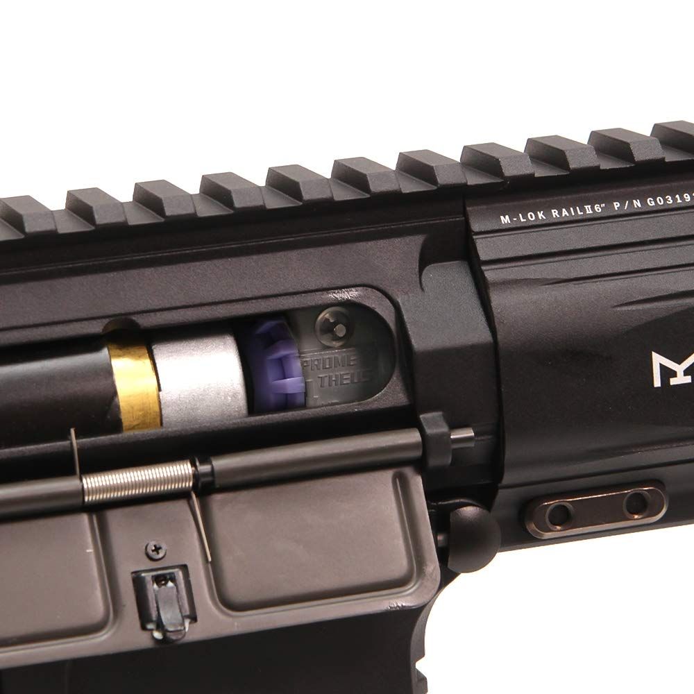M4シリーズ電動ガンに対応する剛性の高いダイキャスト製のメタルチャンバーです。 無段階式のロータリータイプHOP機構で命中精度・HOP精度の向上を目指しました。 また、バレルクリップはオリジナルの形状を採用しバレルの回転・ブレを抑制します。