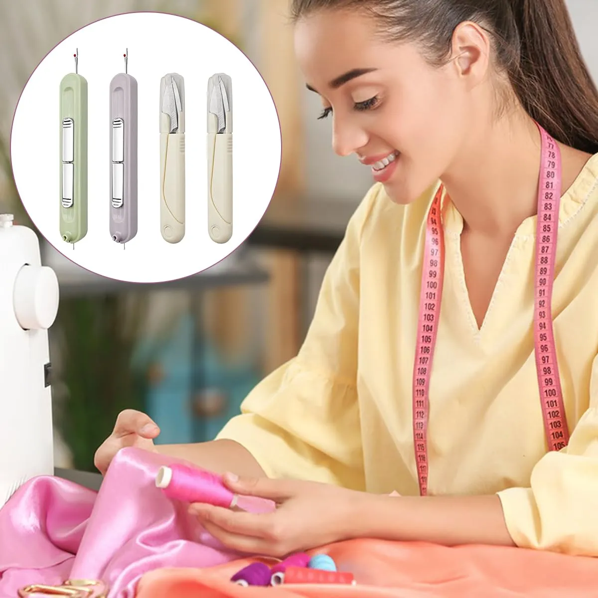プレミアム品質:クイックミシンニードルスレッダーとシームリッパーは丈夫なABSとステンレススチール素材で作られており、鋭い刃で縫製作業を迅速に行えます。