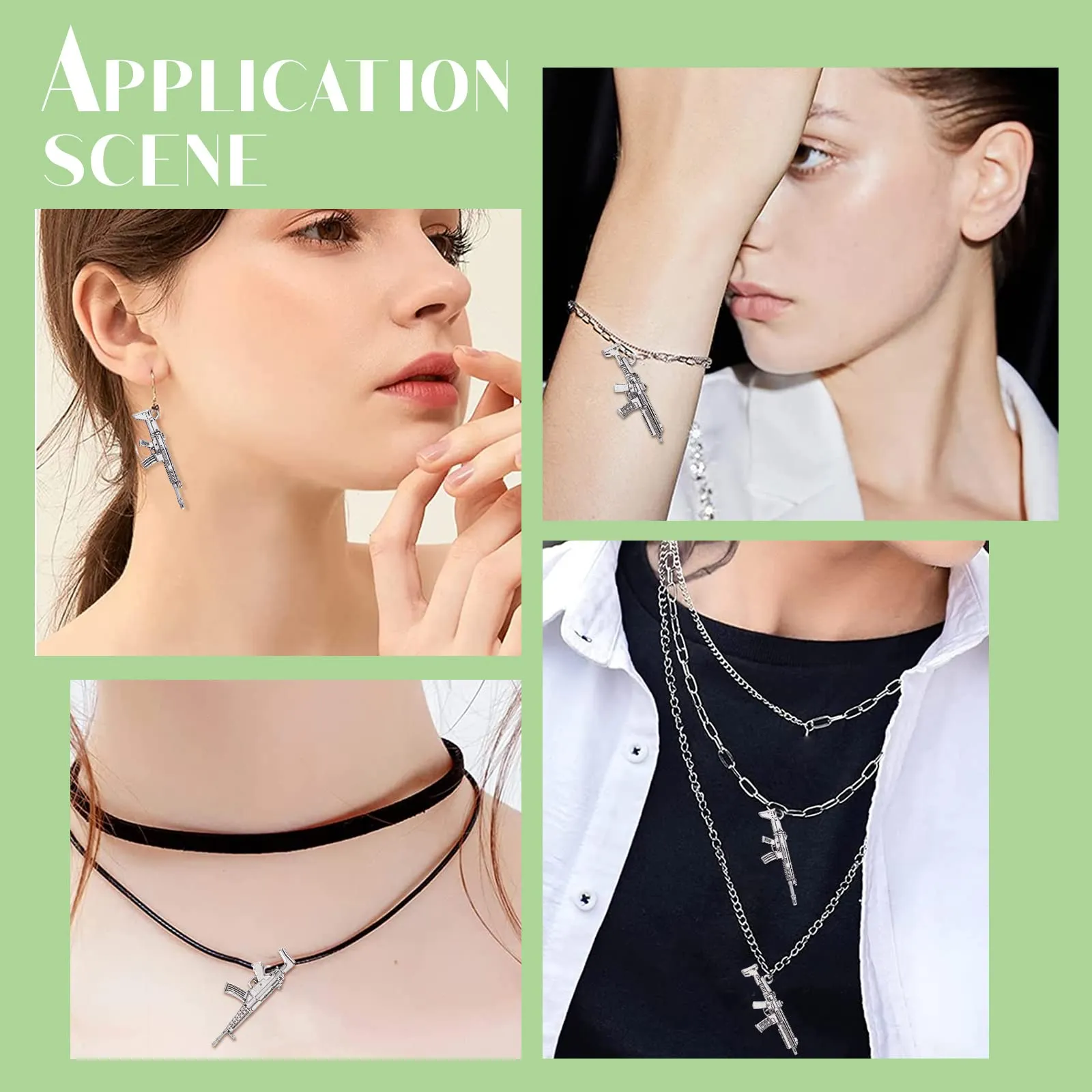【用途が広い】:銃チャームはイヤリングやネックレスなどを作るだけではありません。チャーム単独で使用する場合は、車飾り、バッグ飾り、ヘアピン、風鈴を作るためにも使用できるなど、用途は非常に広いです。