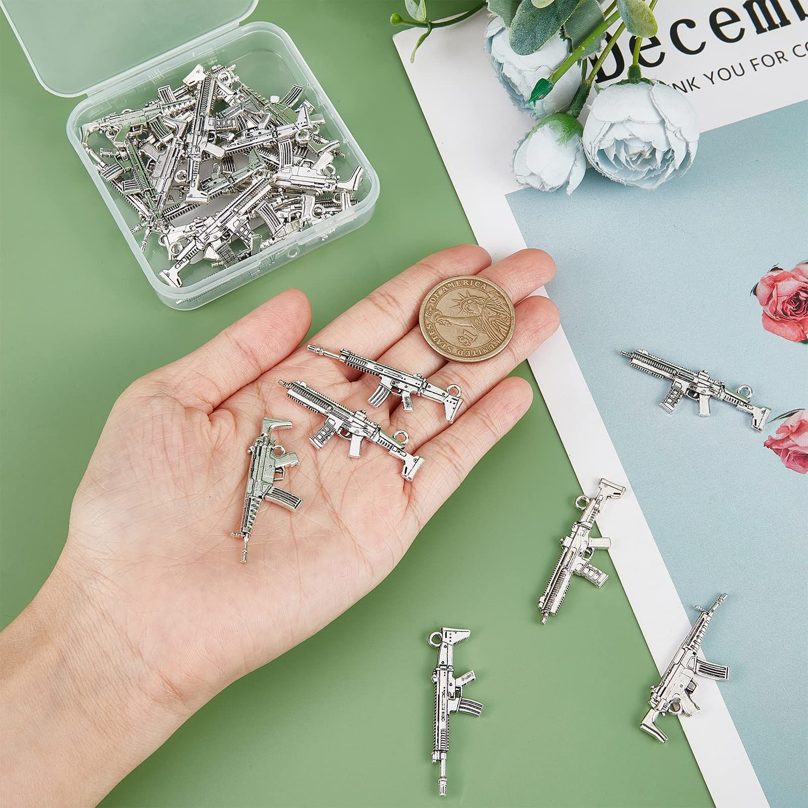 【高品質の材料】:銃チャームは鍍銀技術を使って、もっと光?感があり、より質感があるようにします。合金素材のチャームは防水性と耐寒性があり、長期保存も可能性があります。