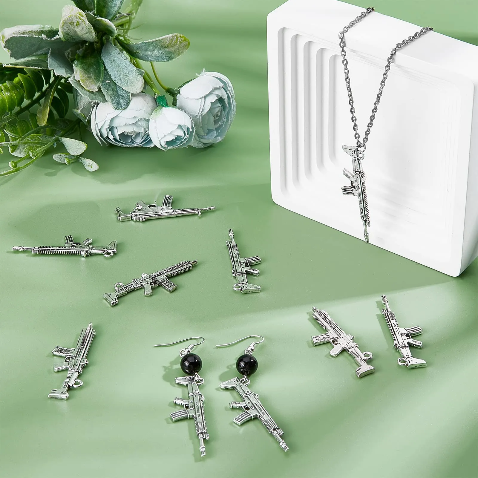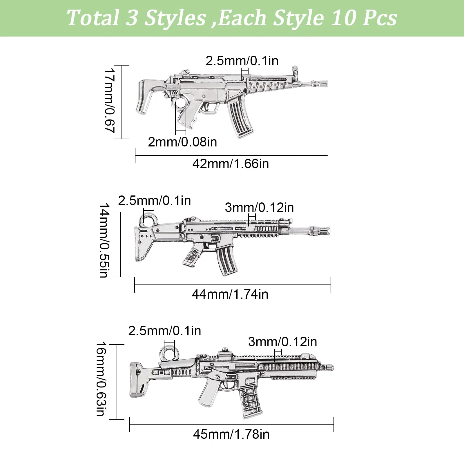 SUNNYCLUE 30個3種 銃 チャーム 武器 チャーム 剣 ペンダント 武器 ガンウェポン パーツ リボルバー 銃 合金ペンダント グレネード ピストル チャーム 銃弾 ペンダント ガン キーホルダー 銃器 ネックレス マシーン グレネード サブマシンガン 狙撃銃 メタルパーツ チベットスタイル ヴィンテージ 銀古美 シルバー色 アンチック 金属色 チャームパーツ アクセサリー 基礎パーツ ジュエリー作り レディース デコキット クラフト手芸 手作りキット 長剣 DIY飾り物