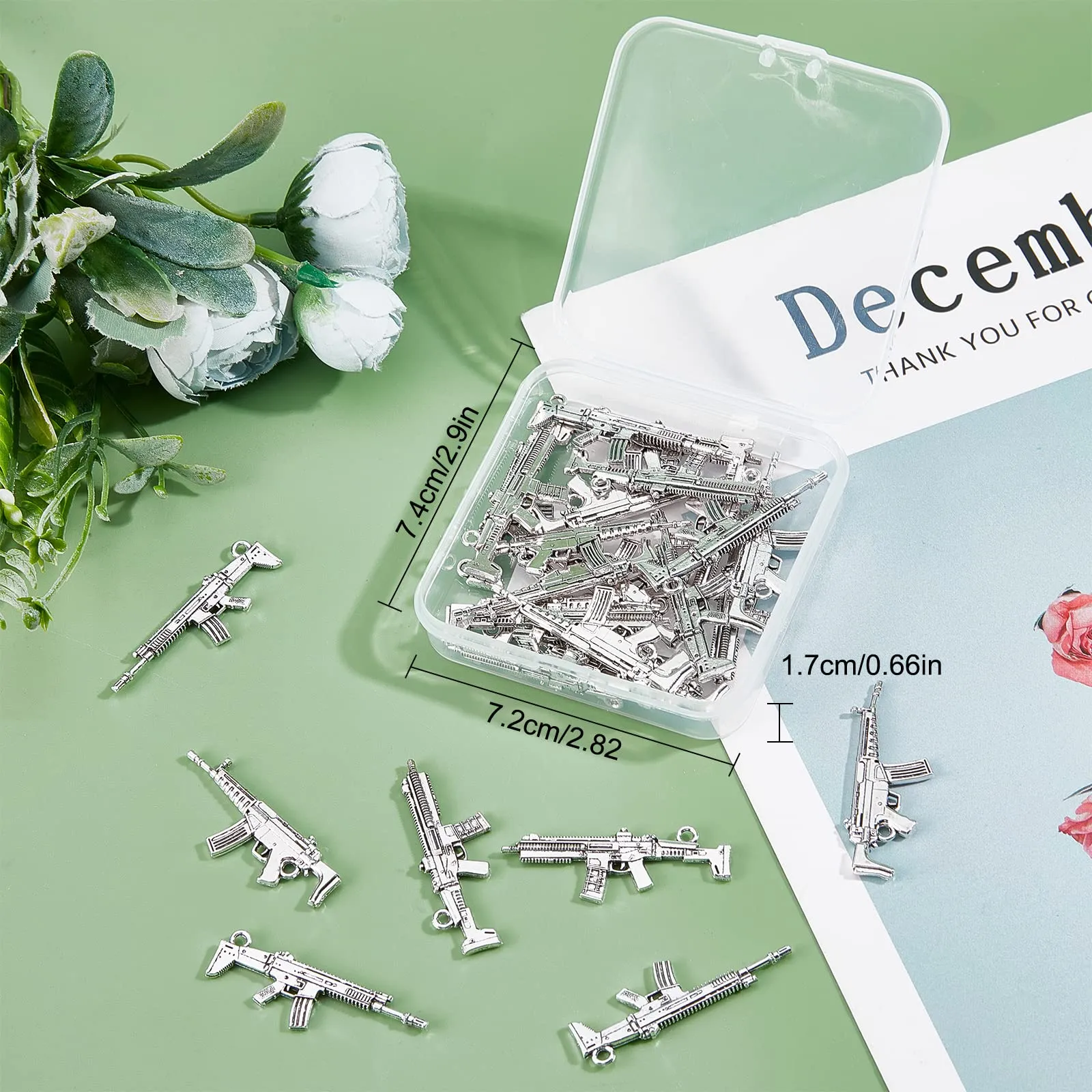 【サイズと数量】:銃チャーム*30個3種:42*17mm、44*14mm、45*16mm。収納ケース*1つ:7.4x7.2x1.7cm。