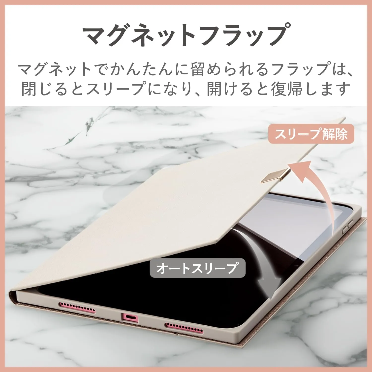 ■不使用時に画面部分を保護するフラップが付いています。フラップを閉じるとスリープモードになり、開けるとスリープから復帰します。