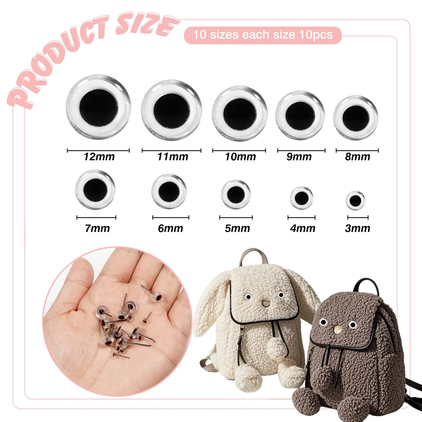 10サイズ:(3mm、4mm、5mm、6mm、7mm、8mm、9mm、10mm、11mm、12mm)が含まれます。各サイズには10個が含まれます。異なるサイズにより、さまざまなニーズを満たすことができます。