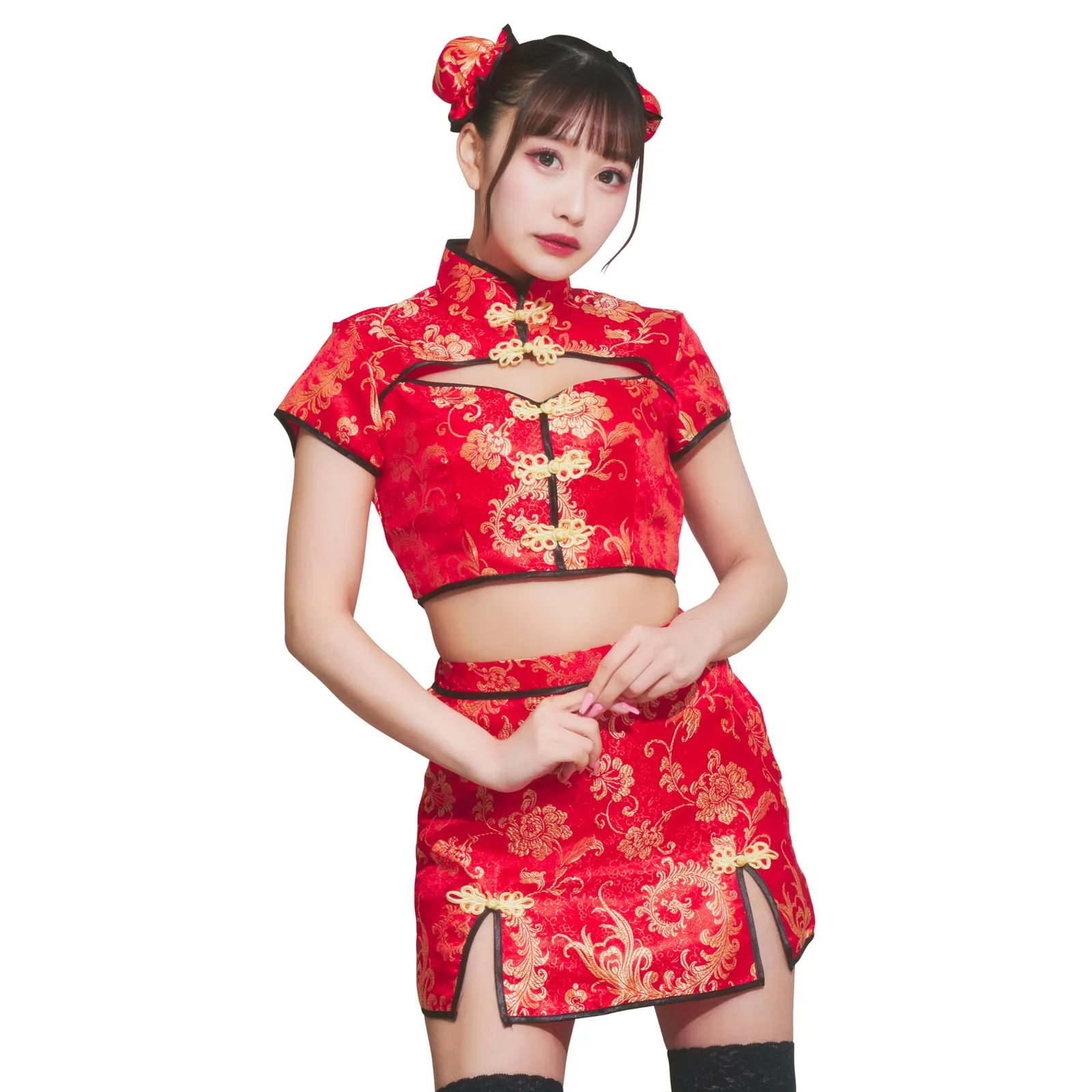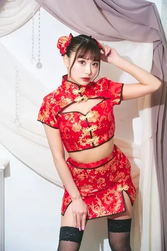大きく開いた胸元とセパレートタイプが珍しいチャイナコスチューム。