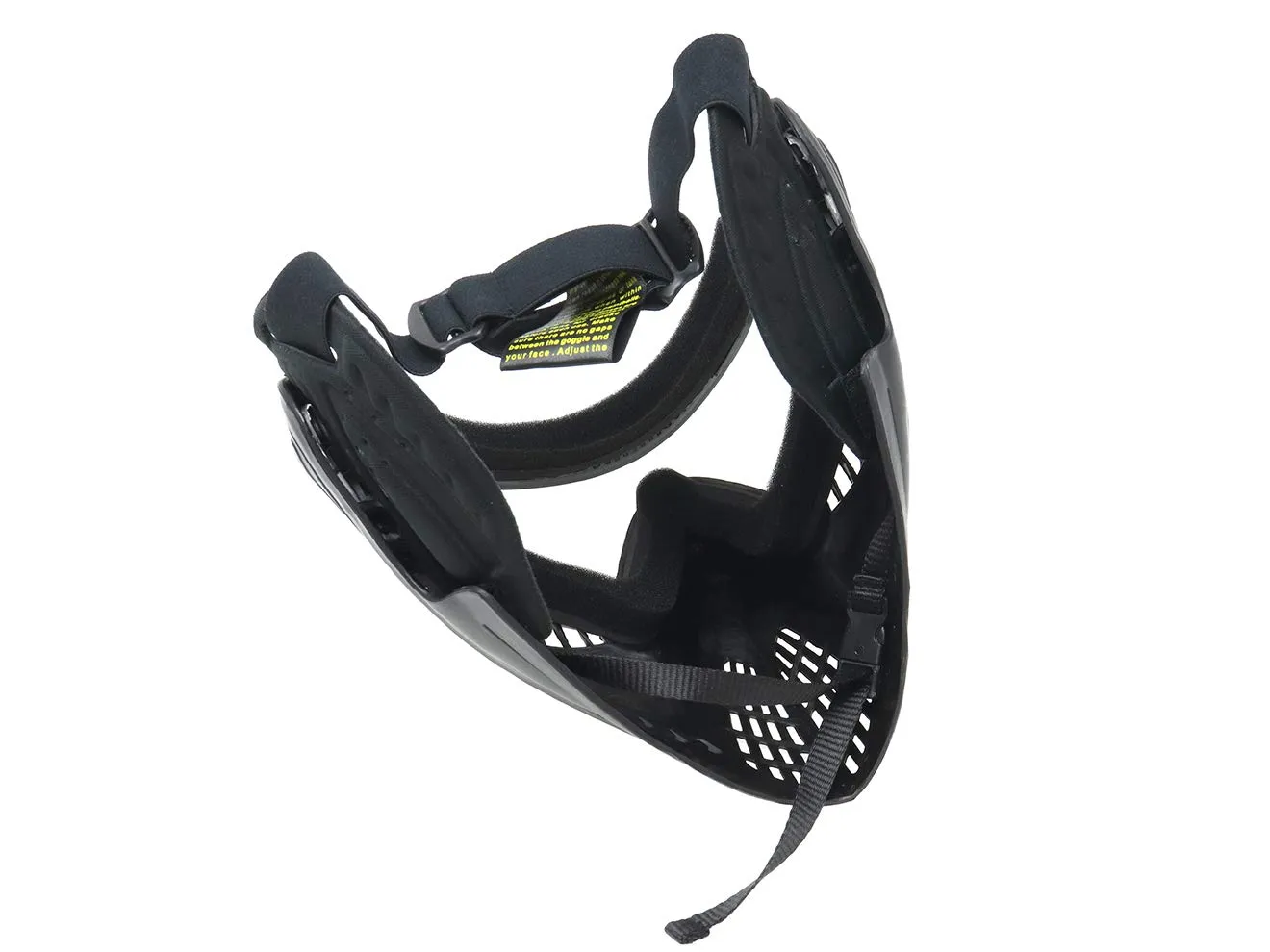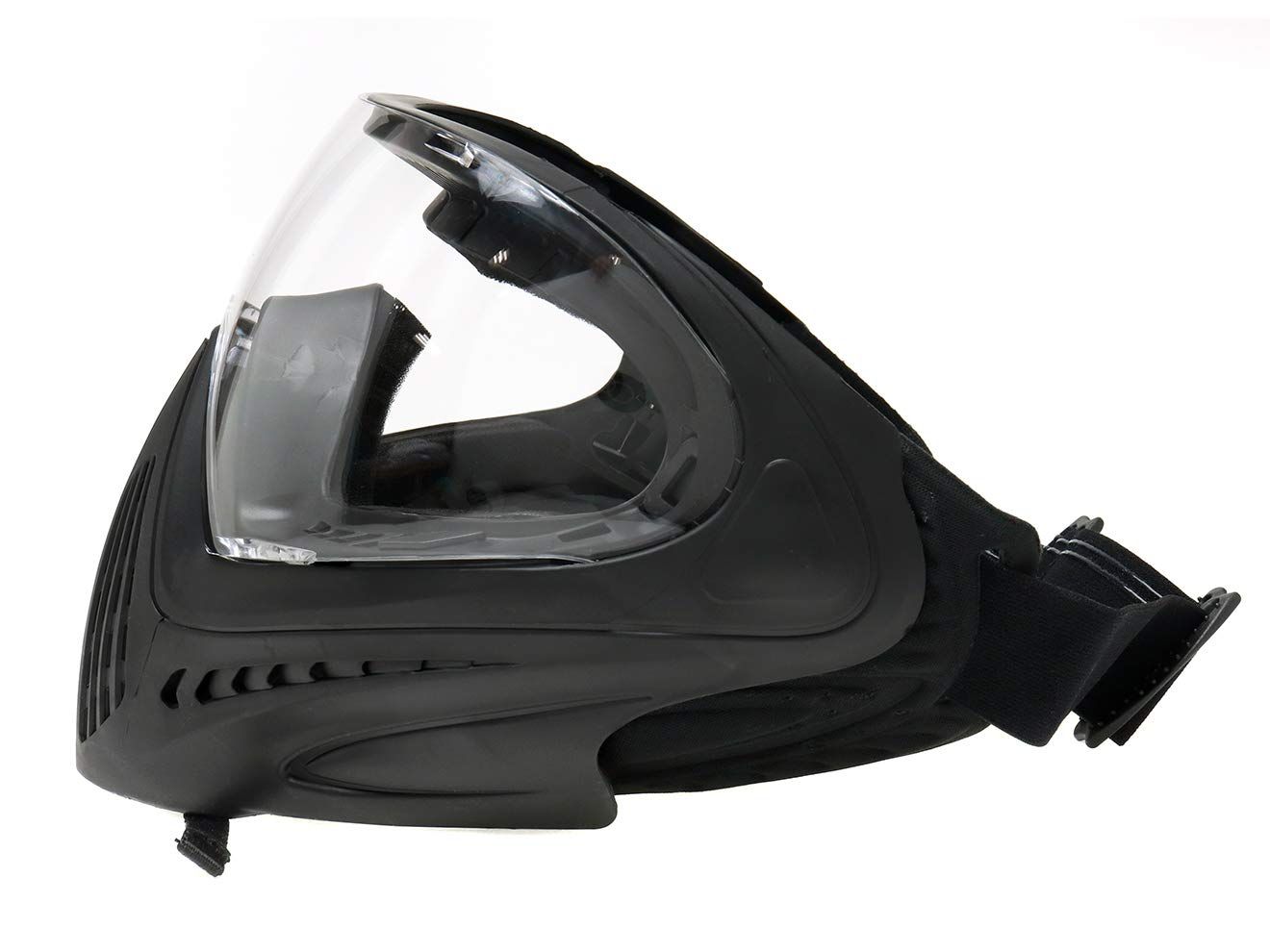 フェイスラインをすっぽりと覆ってくれるフルフェイスマスクです。柔らかいウレタンパッドが耳周りに装着されていて、被弾防止とバンドの圧迫感の軽減を両立しています。