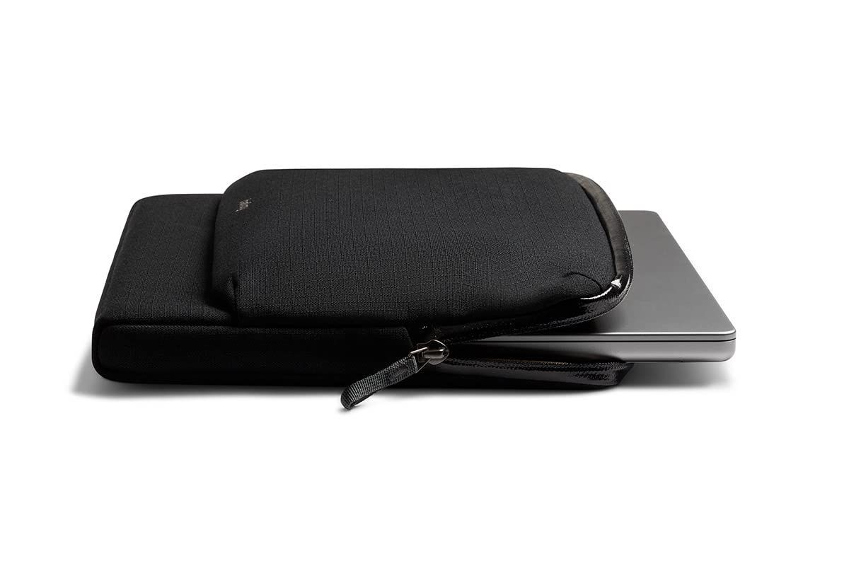 ノートPCと標準サイズのメモ帳を収納できる柔らかな裏地を備えたパッド入りスリーブ