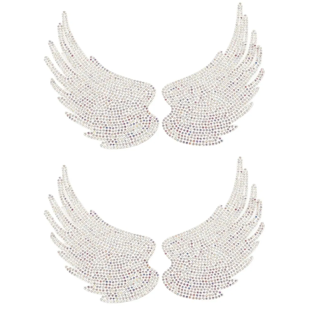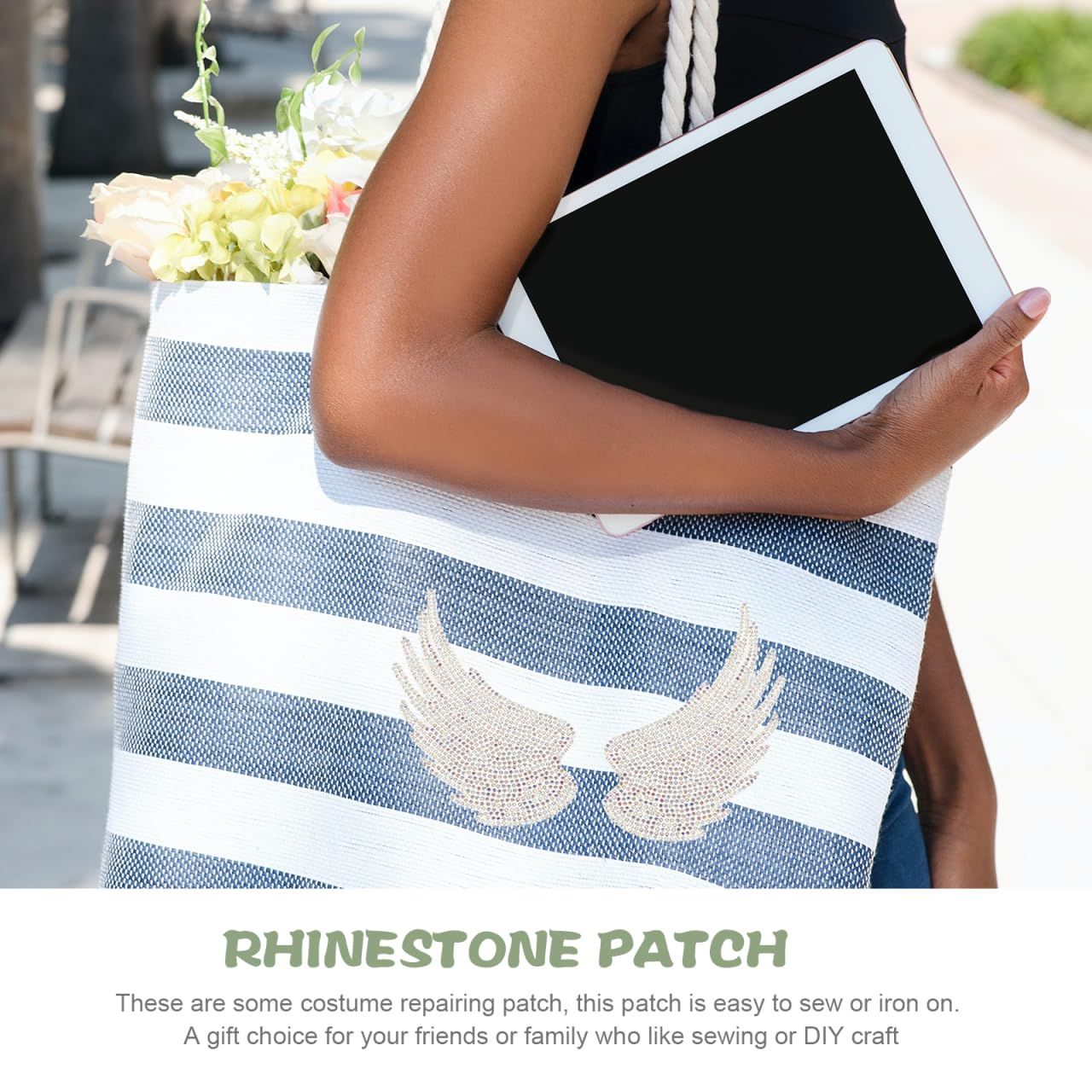 鮮やかな天使の羽デザイン:14.5×7.5センチサイズのグリッターとラインストーンが施された羽のアップリケが服装を華やかに彩り、個性的な装飾として目を引きます。