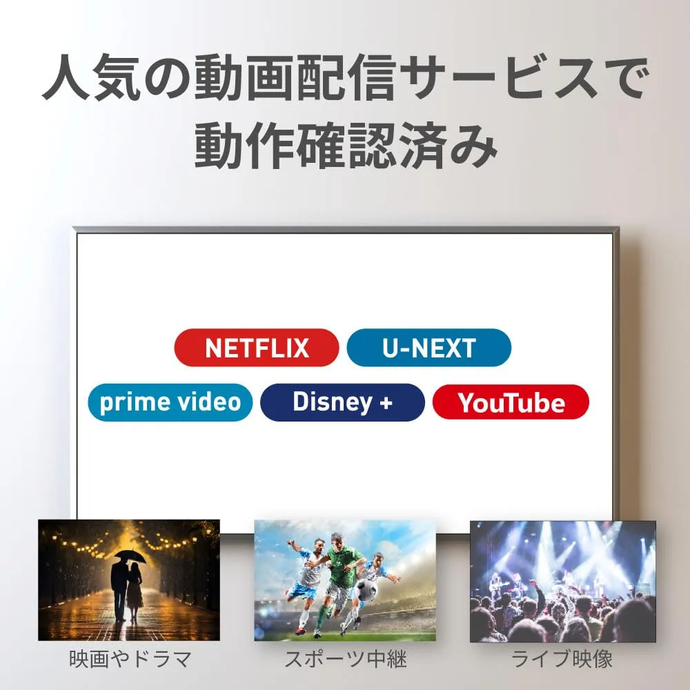 【 最大4K 60Hz、HDR対応であざやかな映像を楽しむ 】 本製品は最大4096x2160(4K60Hz)に対応しており、大画面モニターでの動画視聴におすすめです。また、超高画質技術「HDR(High Dynamic Range imaging)」に対応し、鮮やかでリアルな映像を再現します。