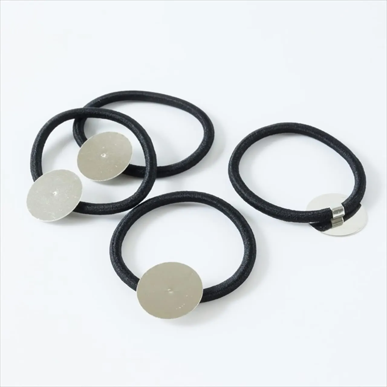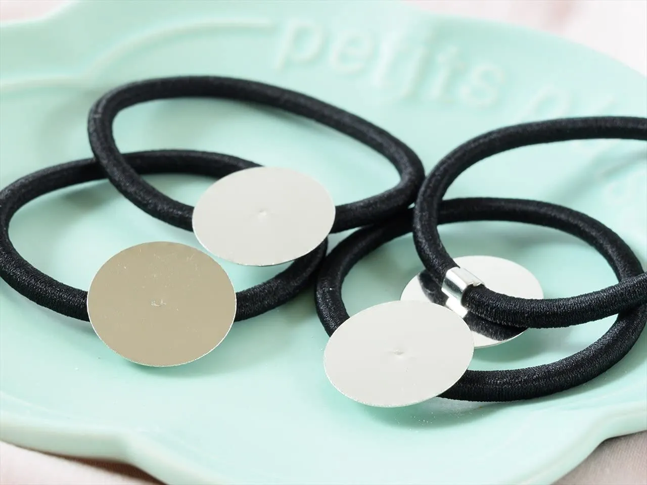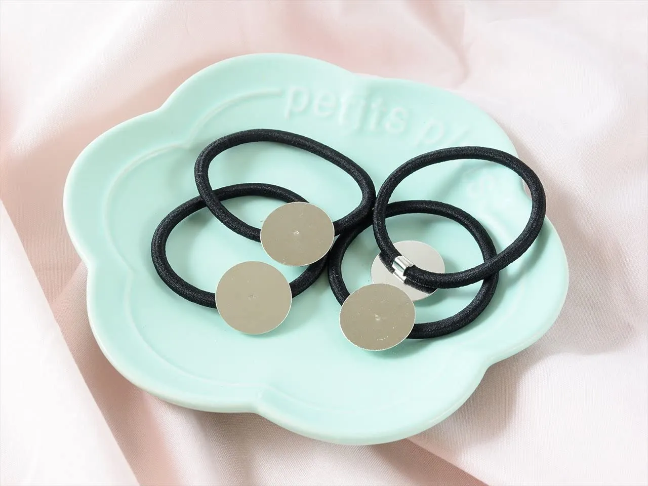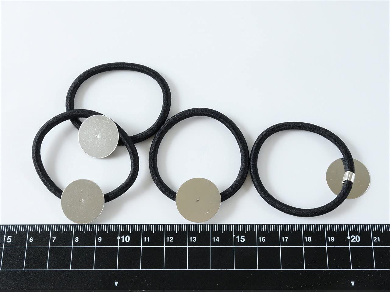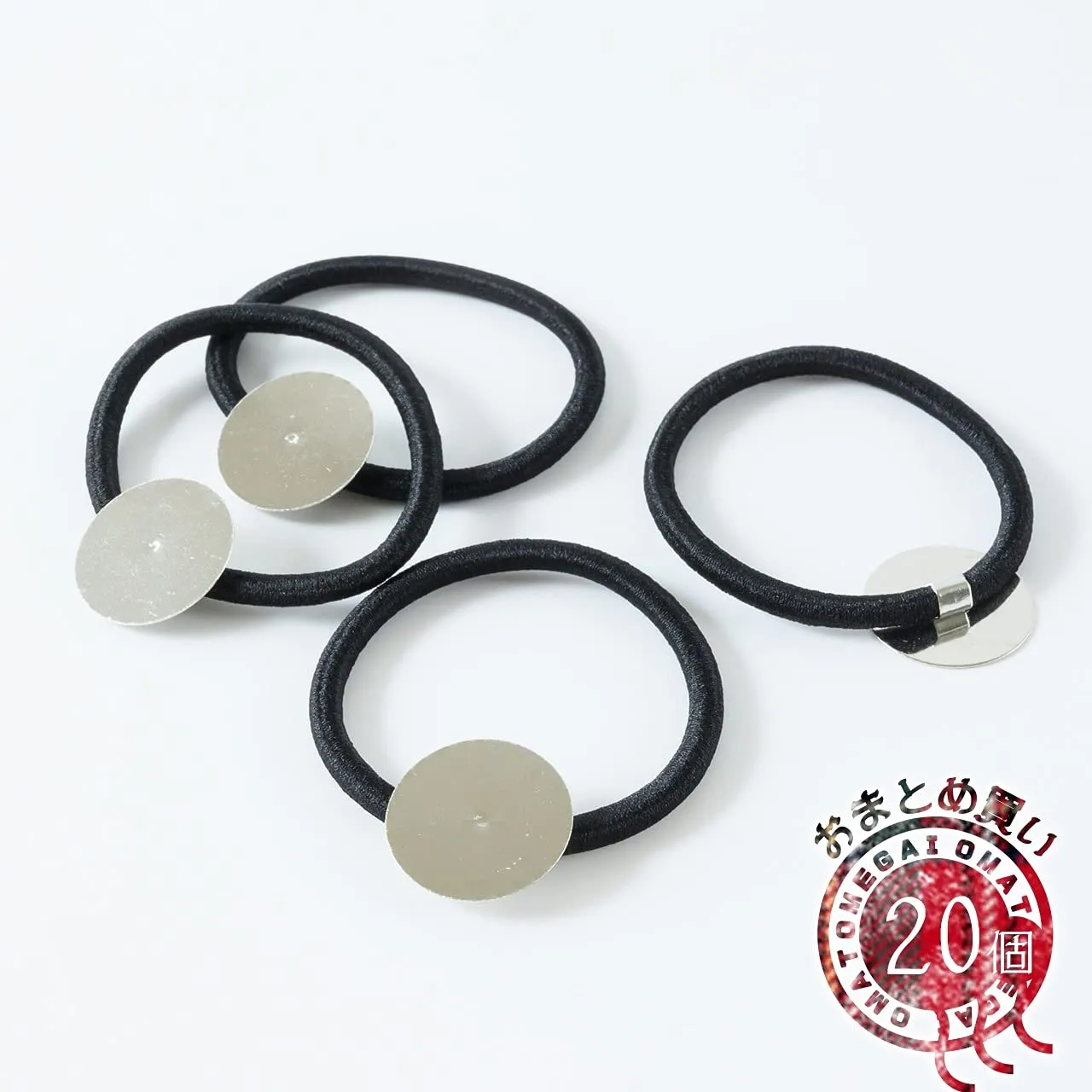 【内容詳細】ヘアゴムパーツ 平皿付き 直径約20mm ブラック 20個 約2cm 貼り付け 接着台付き