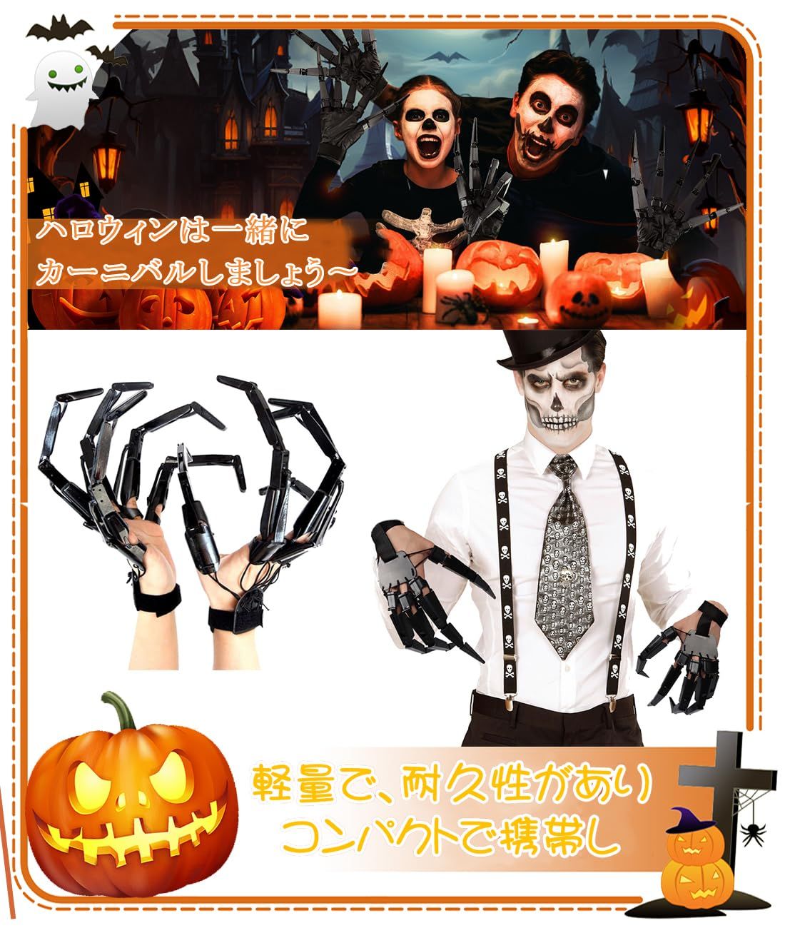 【??柔軟な関節指】ハロウィン用のスケルトンハンドは、頑丈で軽量な品質で、自分の指と同じくらい柔軟で、すべての指のサイズにフィットし、着脱が簡単です。優れた快適性と柔軟なコントロールを提供し、リアルな動きでキャラクターを体現できます。