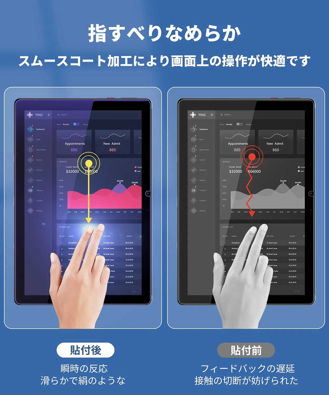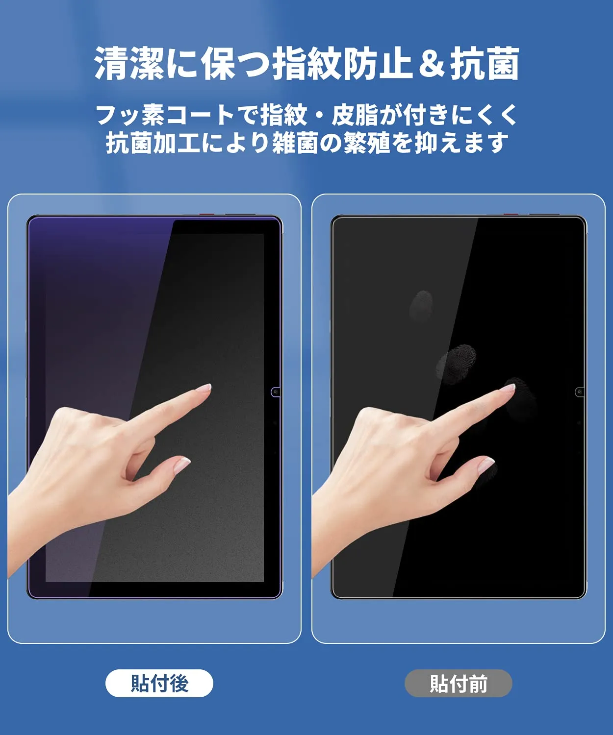 【傷防止・指紋防止】傷防止、指紋汚れ防止、画面をしっかり保護します。ホコリが付着しにくい帯電防止仕様です。