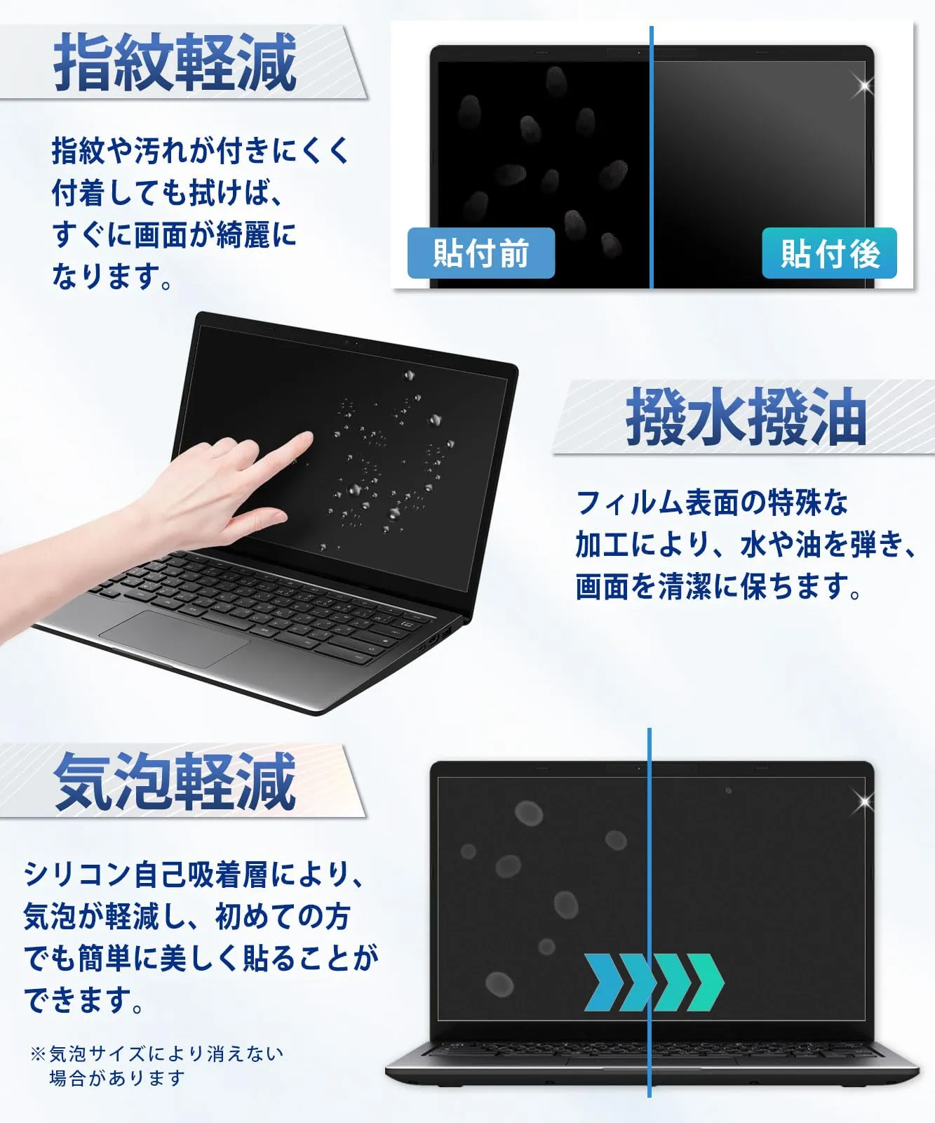 【貼りやすい】 シリコン自己吸着層により、気泡が入りにくく、初めての方でも簡単に美しく貼ることができます。特殊素材を採用しているため、位置合わせもしやすく、端までしっかり密着。貼付後も操作性を損なわず、快適にご使用いただけます。
