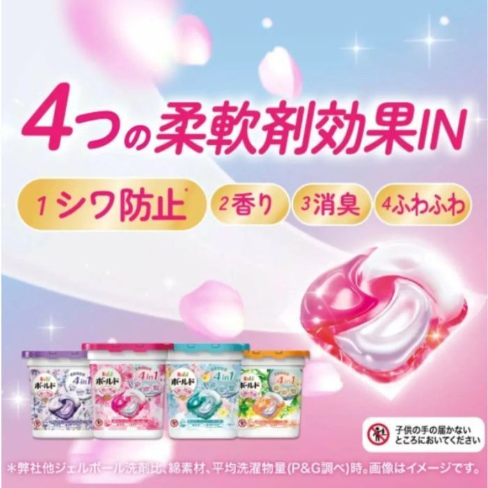・柔軟剤効果 4 in 1強洗浄 洗い上がり輝く白さシワ*1 &黄ばみ防止*1 アイロンがけが楽に!*1ふんわり仕上げ