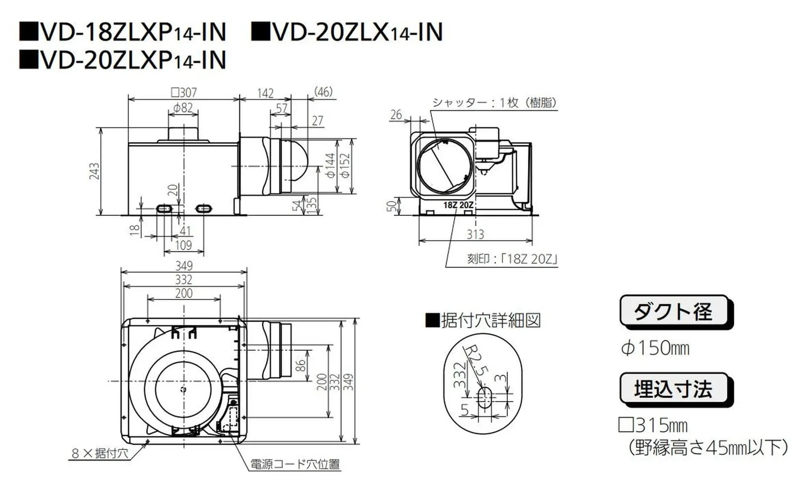 ●ダクト径 (mm) EA:150