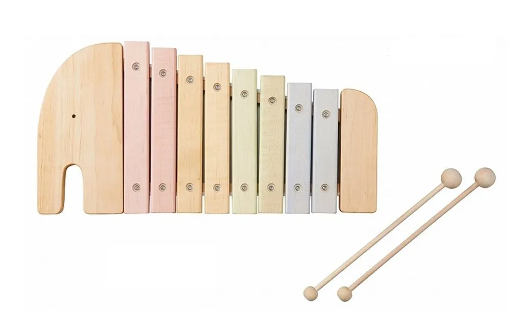 エレファントシロフォンは、木特有の温かみのある音を気持ちよく感じることができる木琴です。ド・レ・ミ・ファ・ソ・ラ・シ・ドと、おもちゃとは思えない正確な音色を奏でることができます。