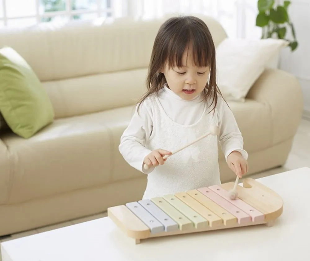 日本国内でひとつひとつ丁寧に作られている木琴のおもちゃ。シンプルでかわいいフォルムと、やさしい色合いが特長です。木製ならではの心地よい音色が、美しい心を育みます。