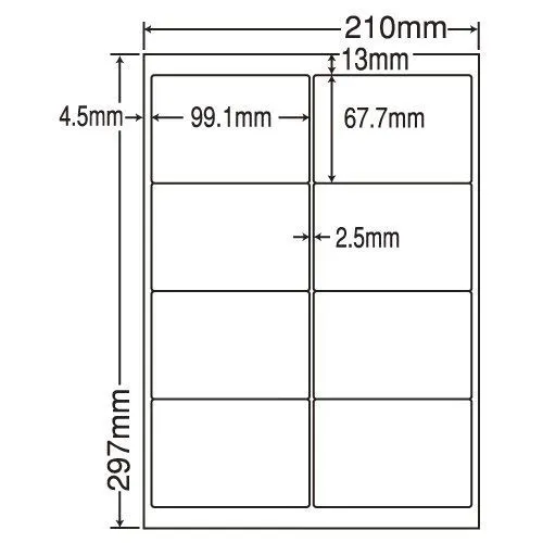 LDW8SE-1 OAラベル ナナワード (99.1×67.7mm 8面付け A4判) 1梱(レーザー、インクジェットプリンタ用。上質紙ラベル)マルチタイプ