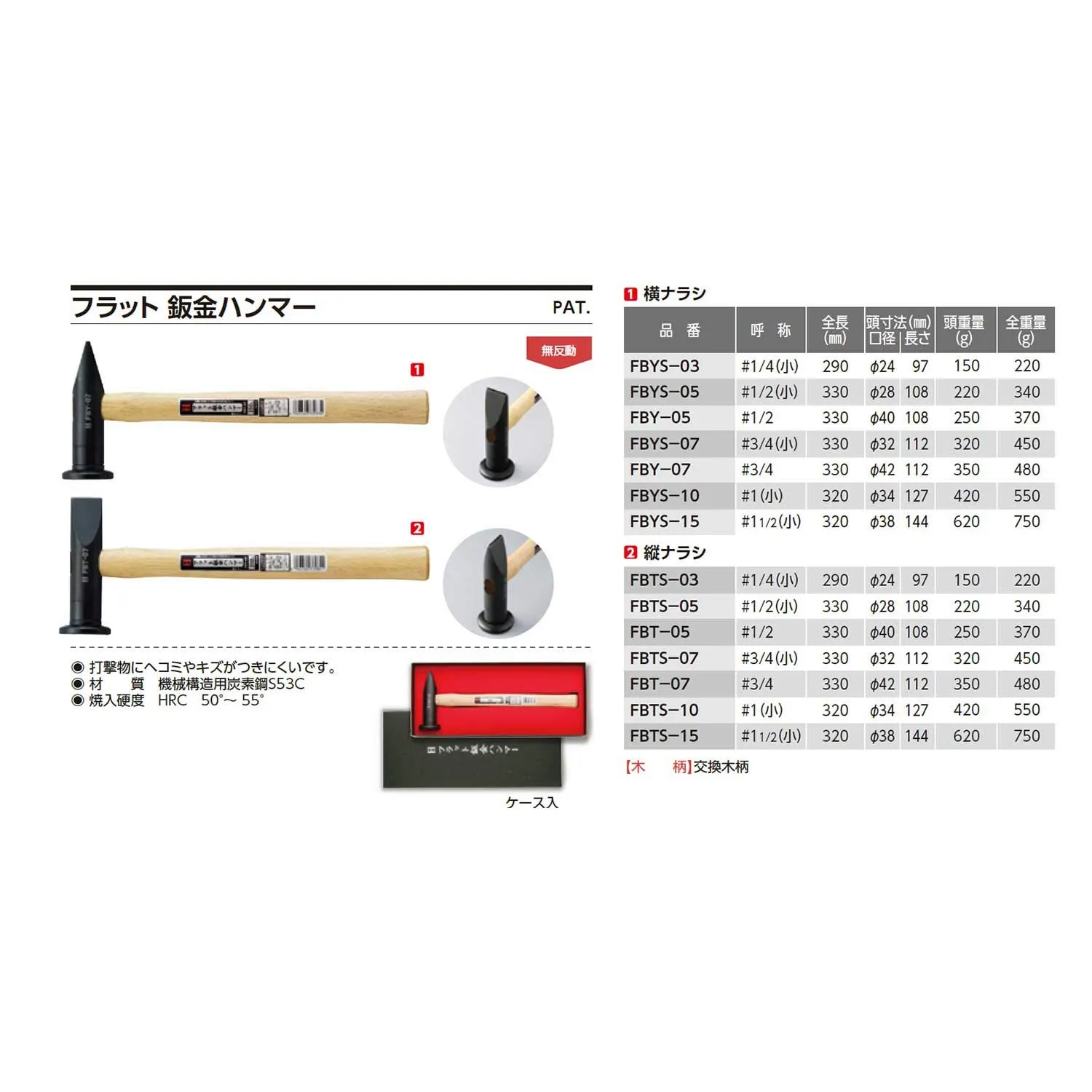 木柄は含水率14%以下の良質の樫を使用。