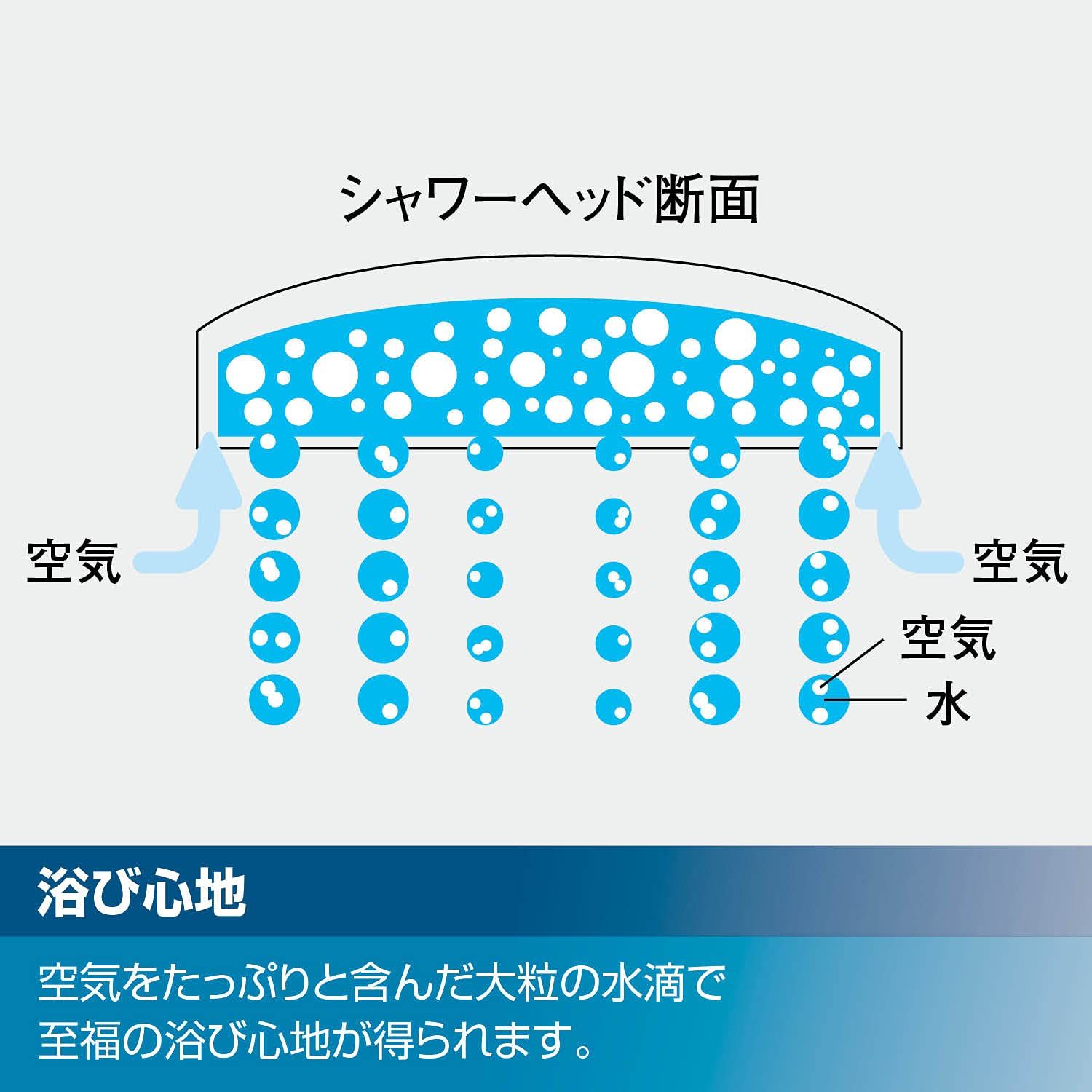 大判のシャワーヘッドと空気を含んだ大粒の水滴で浴び心地の良さを向上、さらに節湯性能も両立させたエコアクアシャワータイプ。