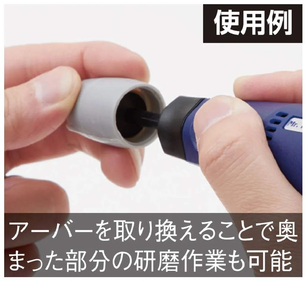 先端アーバーは形状違いの8種類が付属、研磨したい場所によって最適なものを選択可能