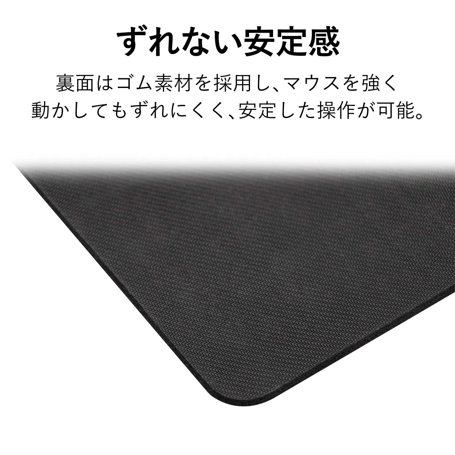 ■裏面にはゴム素材を採用し、マウスを強く動かしてもずれにくく、安定した操作が可能です。
