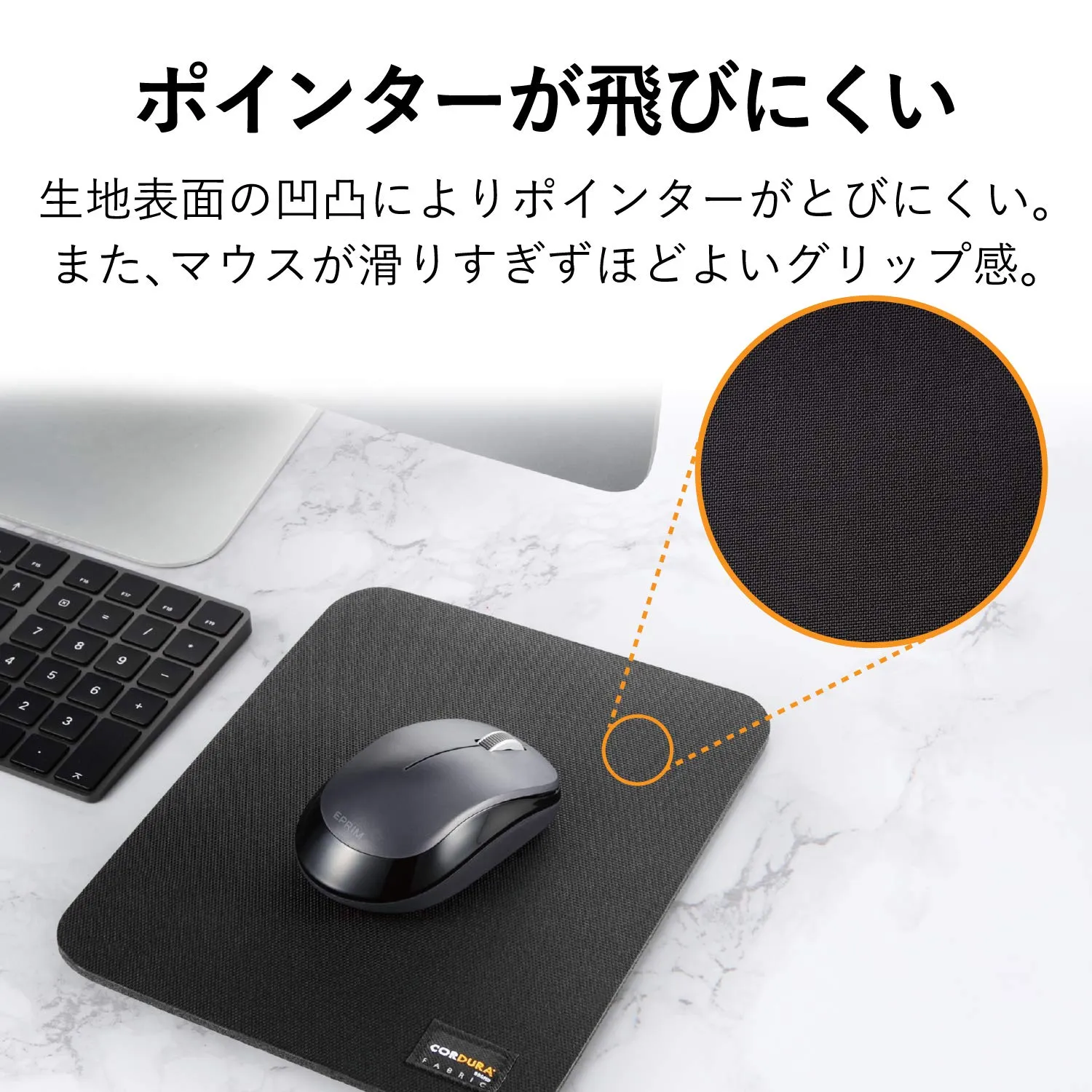 耐久性に優れたCORDURA(R)生地を採用。滑る・止まるというマウスの操作性に優れ、繊細なマウス操作を実現するCORDURA(R)マウスパッド。