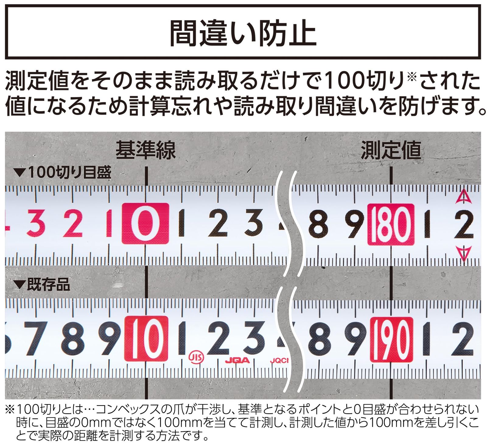 墨出し現場専用の読み間違えない100切り目盛。