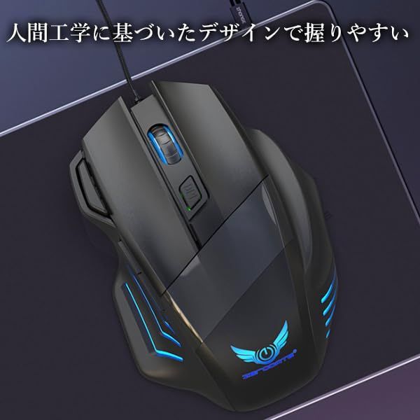 【商品説明】 ・有線接続式のゲーミングマウスです。 ・DPIを4段階調整することができます。 ・有線接続することでマウスがカラフルに光ります。 ・人間工学に基づいたデザインで握りやすくなっています。