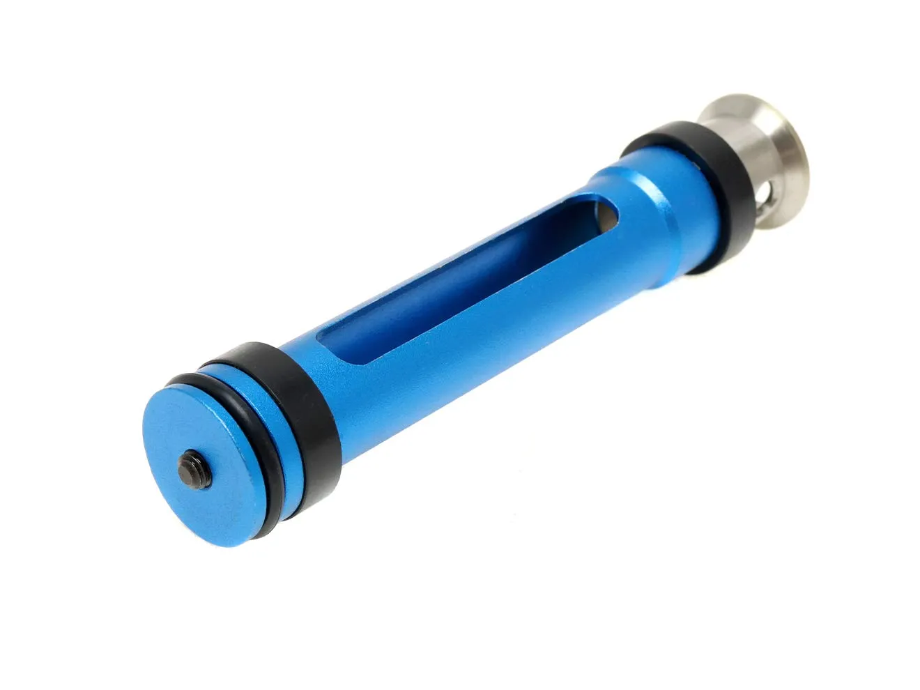ピストンはアルミ製CNCで適度な重量感。前後にPOM製のサポートリングを設けており、45°シアーで問題になるシリンダーとの摩耗を可能な限り抑えています。シアー部分は強度に優れたステンレス製で確実なオペレーションを長期間維が可能です。