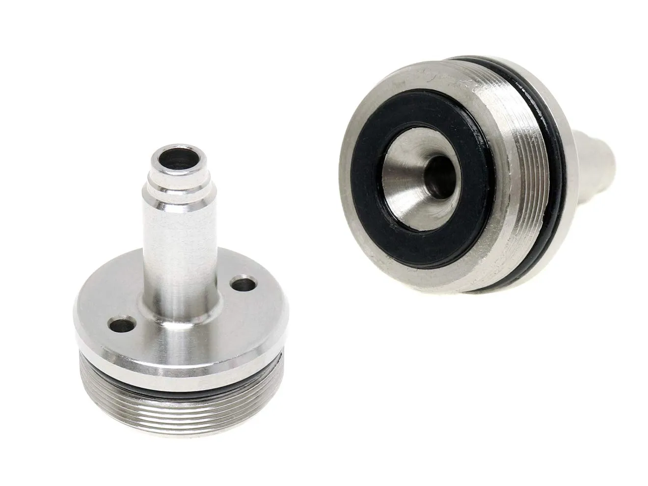 シリンダーヘッドは真鍮製で気密アップ、テーパー加工による流速アップ、ダンパーラバーによる静音性アップの3つのパラメーターアップを実現しています。