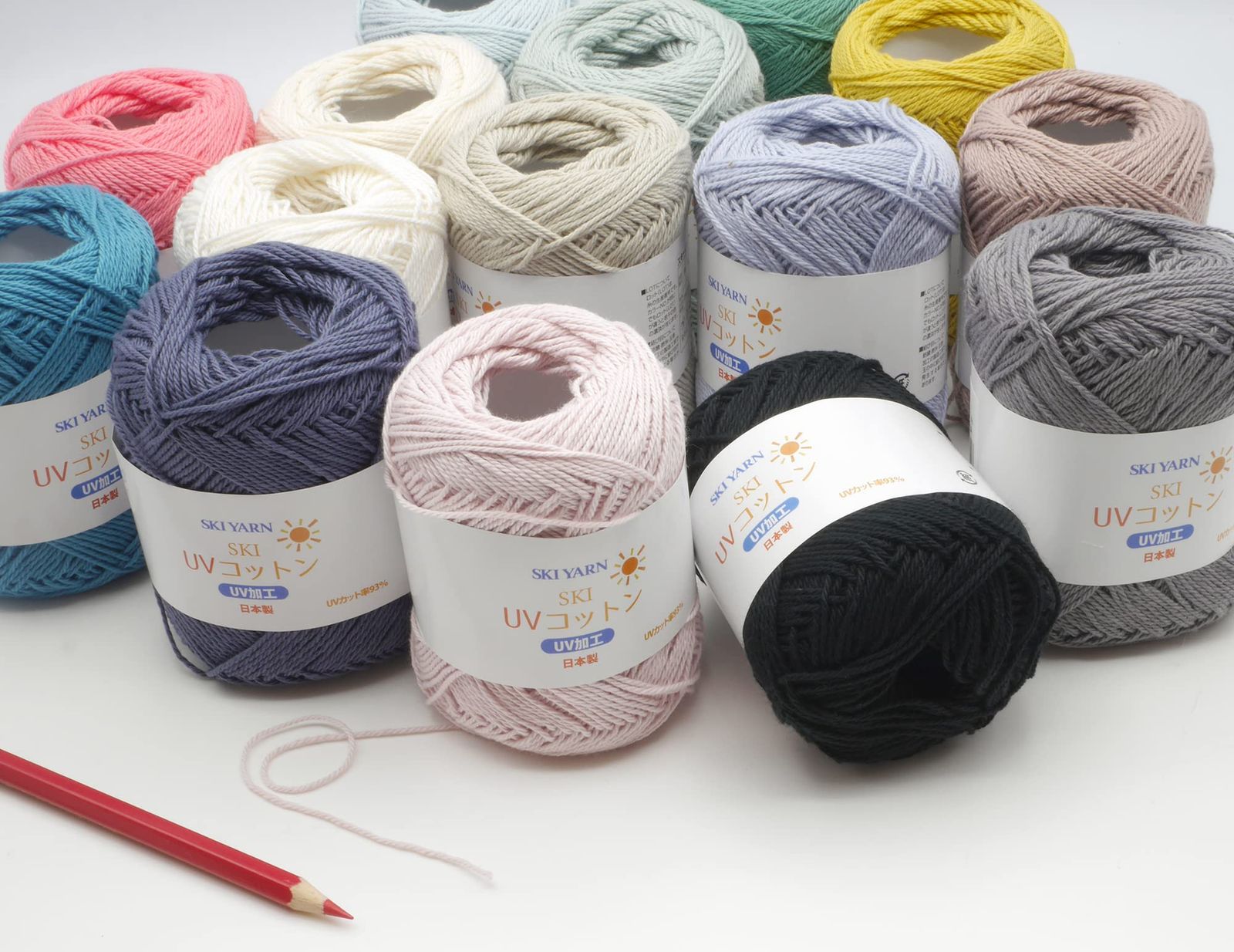 UVカット率93%。UV加工を施したコットン手編み糸です