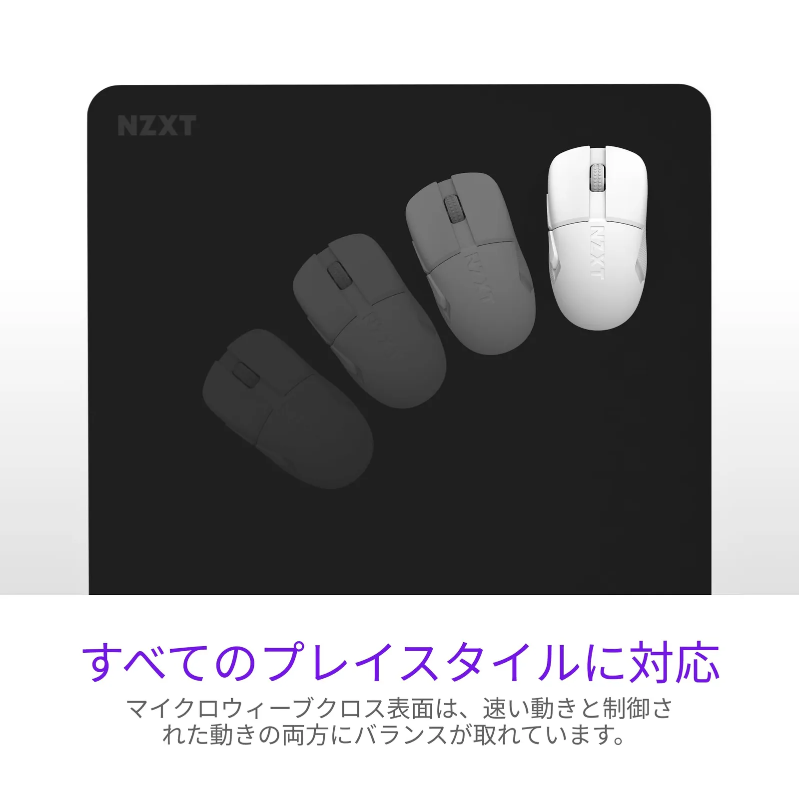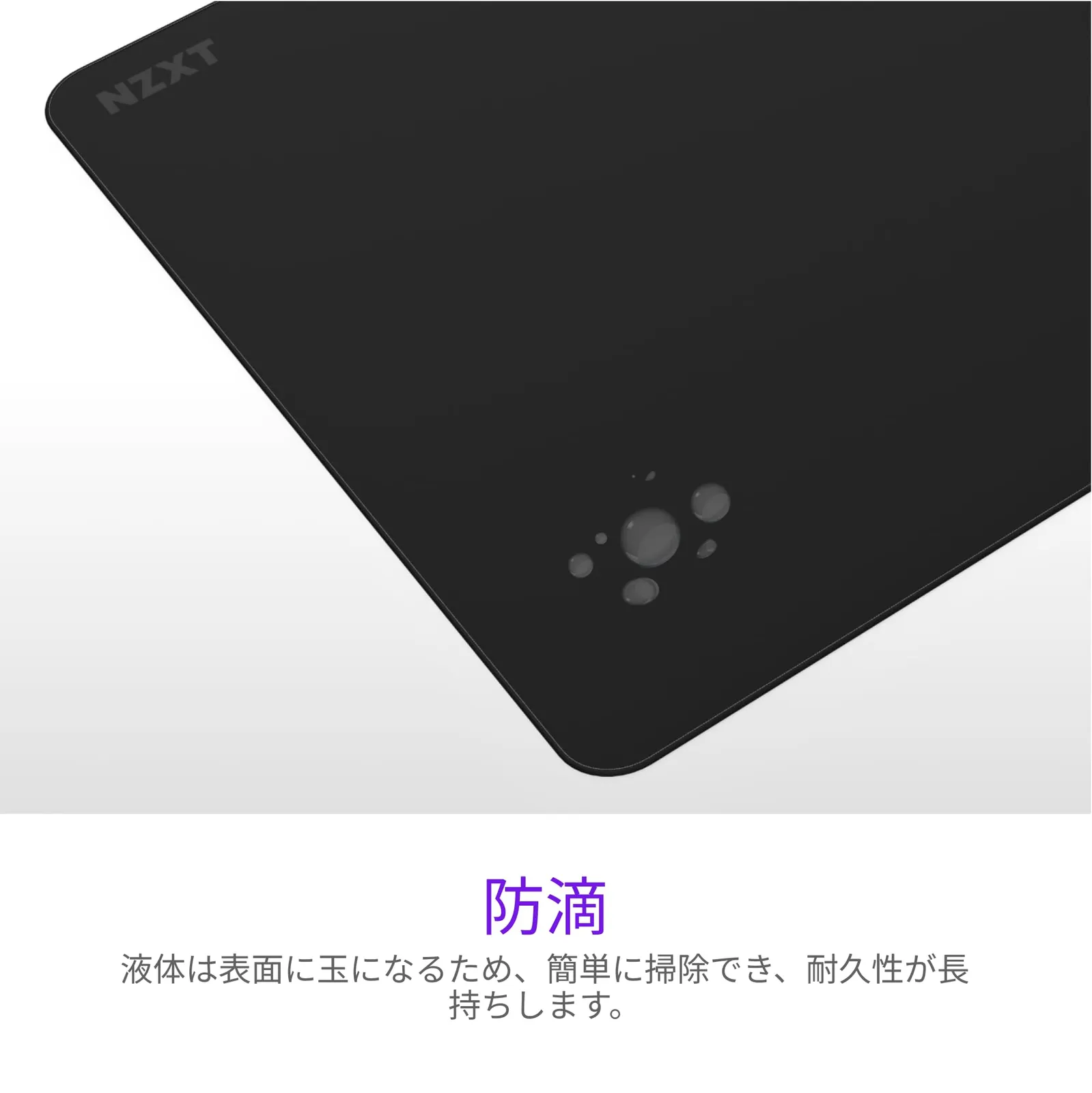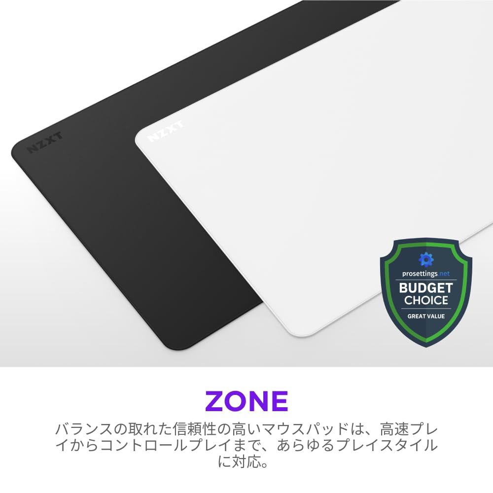 NZXT Zone ゲーミングマウスパッドは、スピードとコントロールのバランスを重視したマイクロウィーブクロス製の表面を採用。天然ゴムの滑り止めベースにより、安定した操作環境を提供します。防水加工や強化ステッチも施されており、耐久性にも優れています。L、XL、XXLの3サイズ展開で、カラーはブラックとホワイトの2色から選べます。