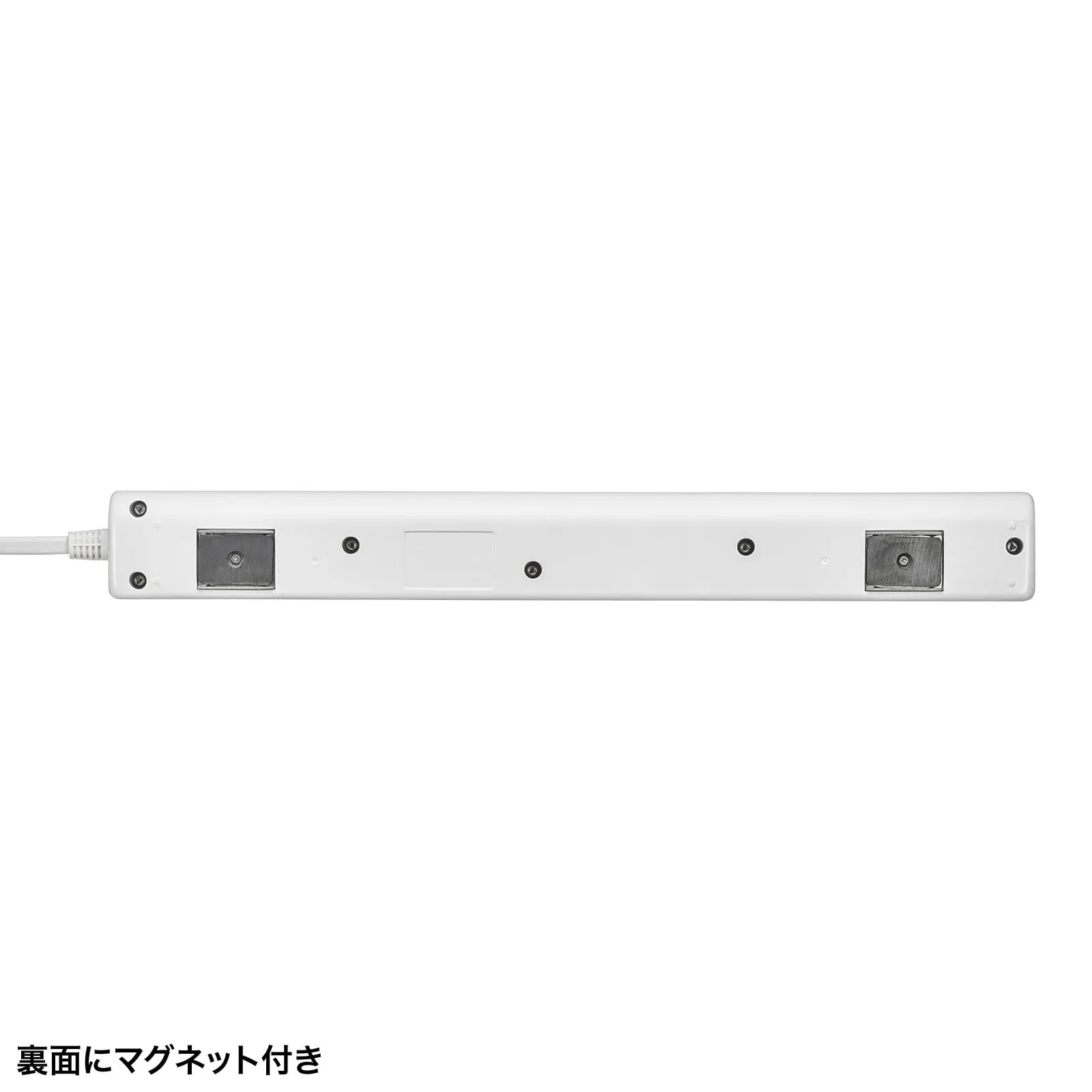 AC差込口は6個口で押しやすい角度に個別スイッチと一括でONとOFFが可能な集中スイッチが付いた節電対策になるタップ。