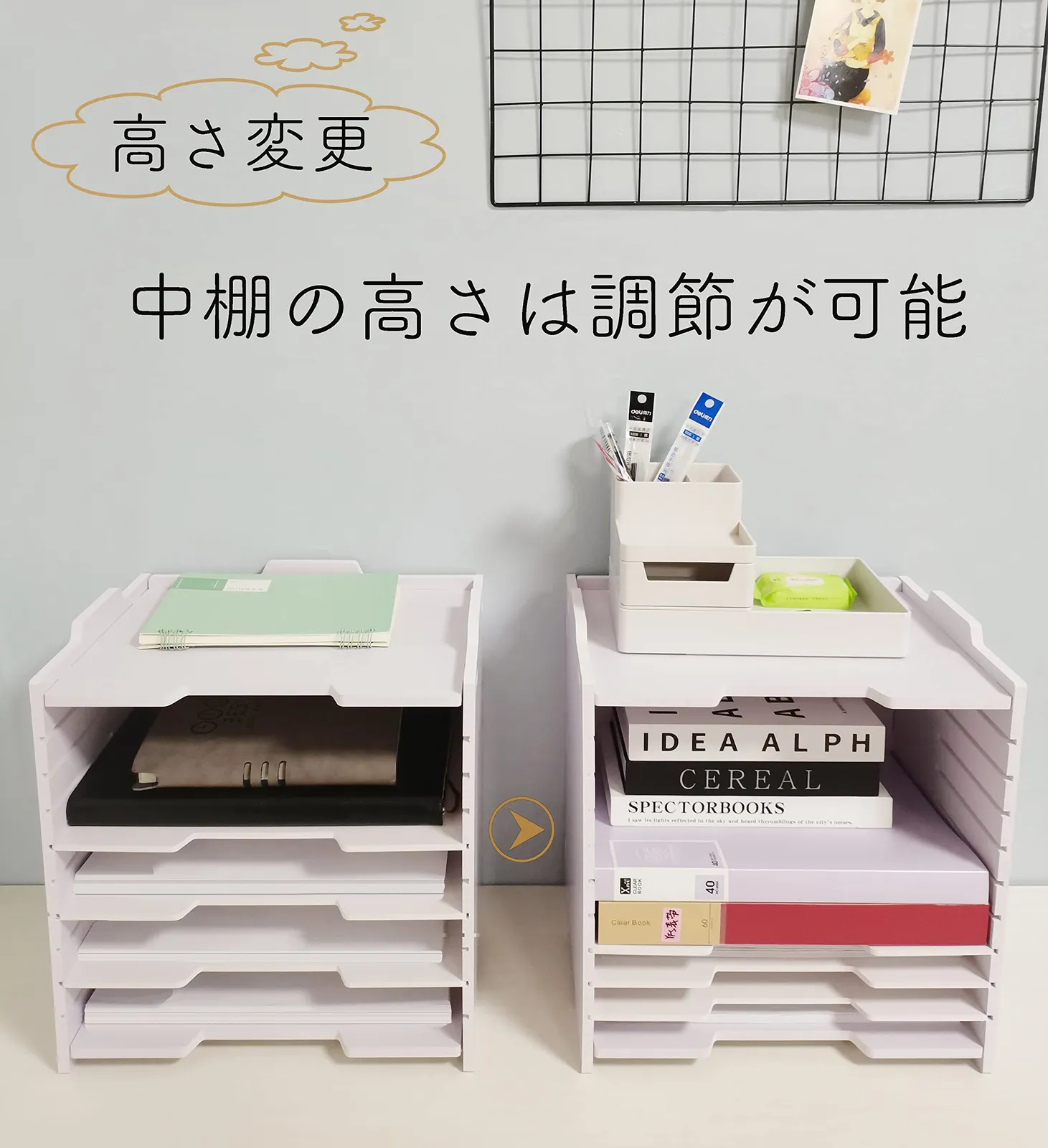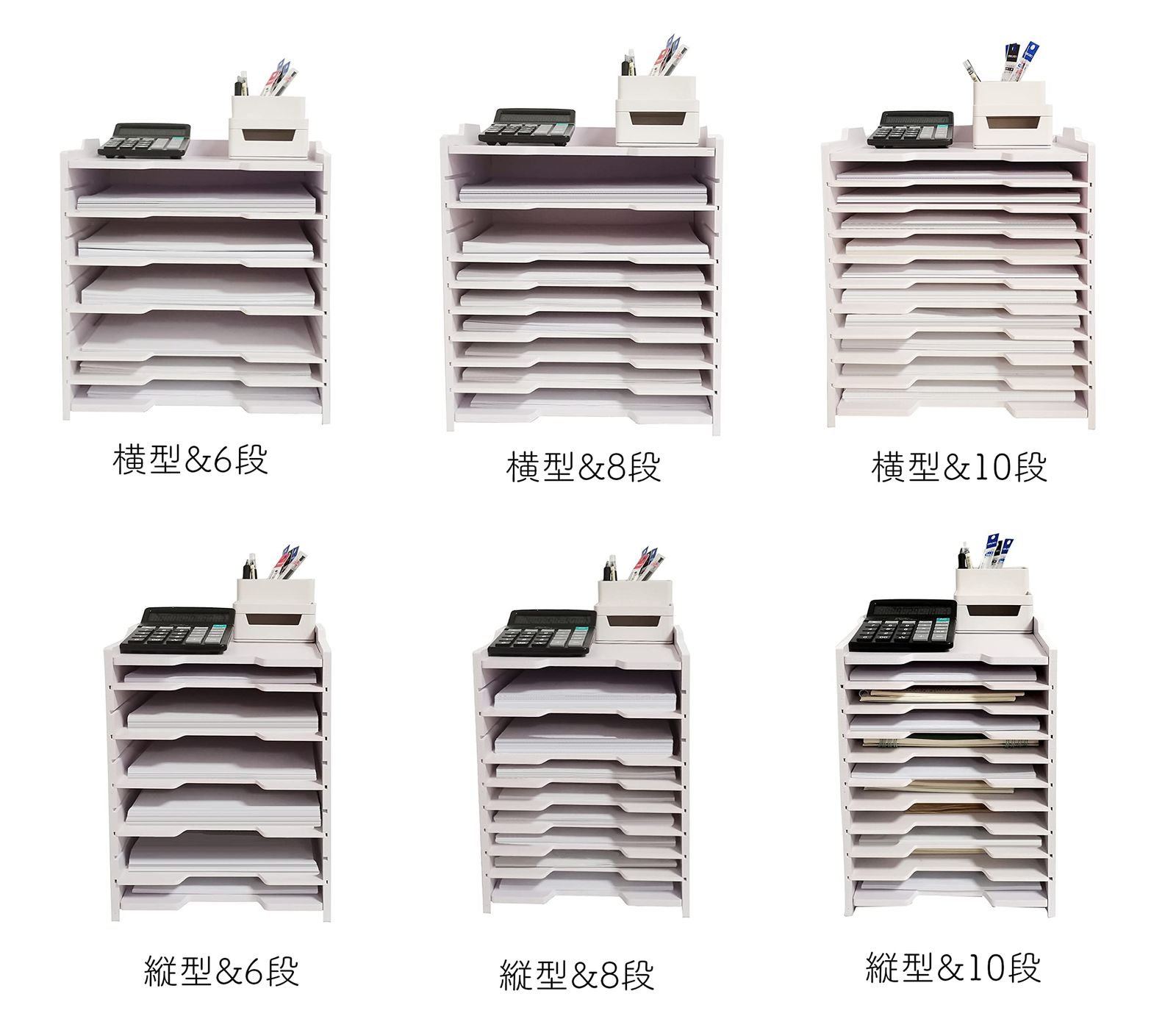 【木製6段/8段/10段書類棚】机に散らかりがちな書類をひとまとめ!B4サイズがすっぽり収まる、移動棚付きの書類棚です。