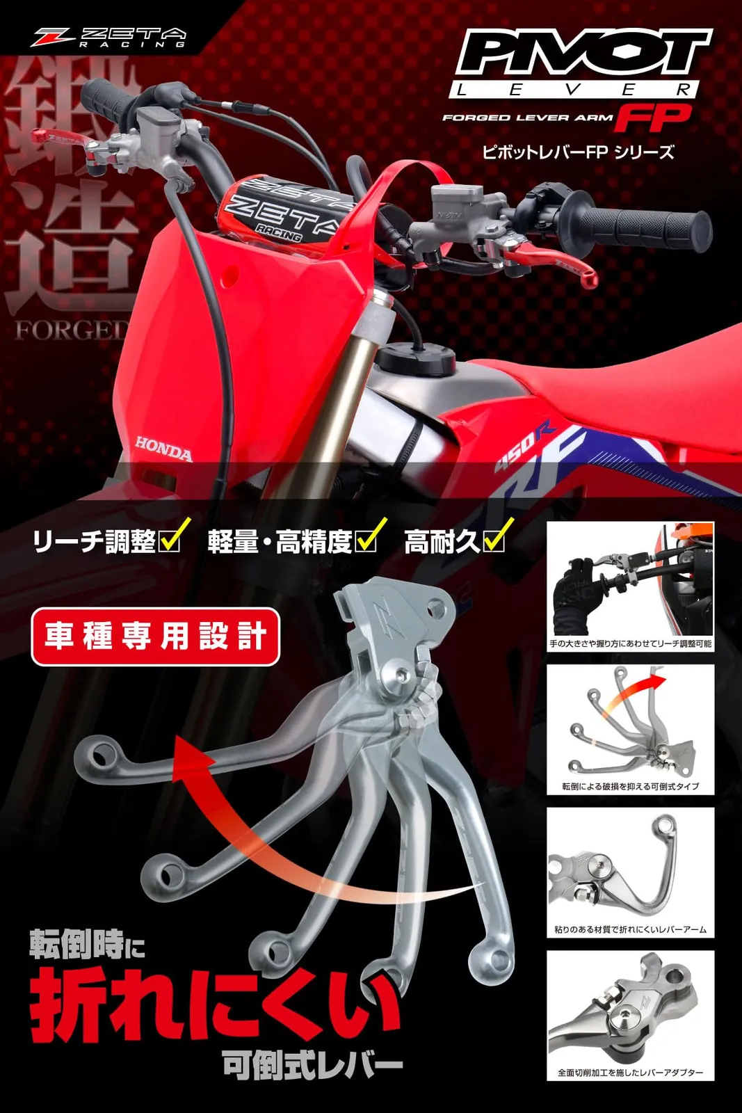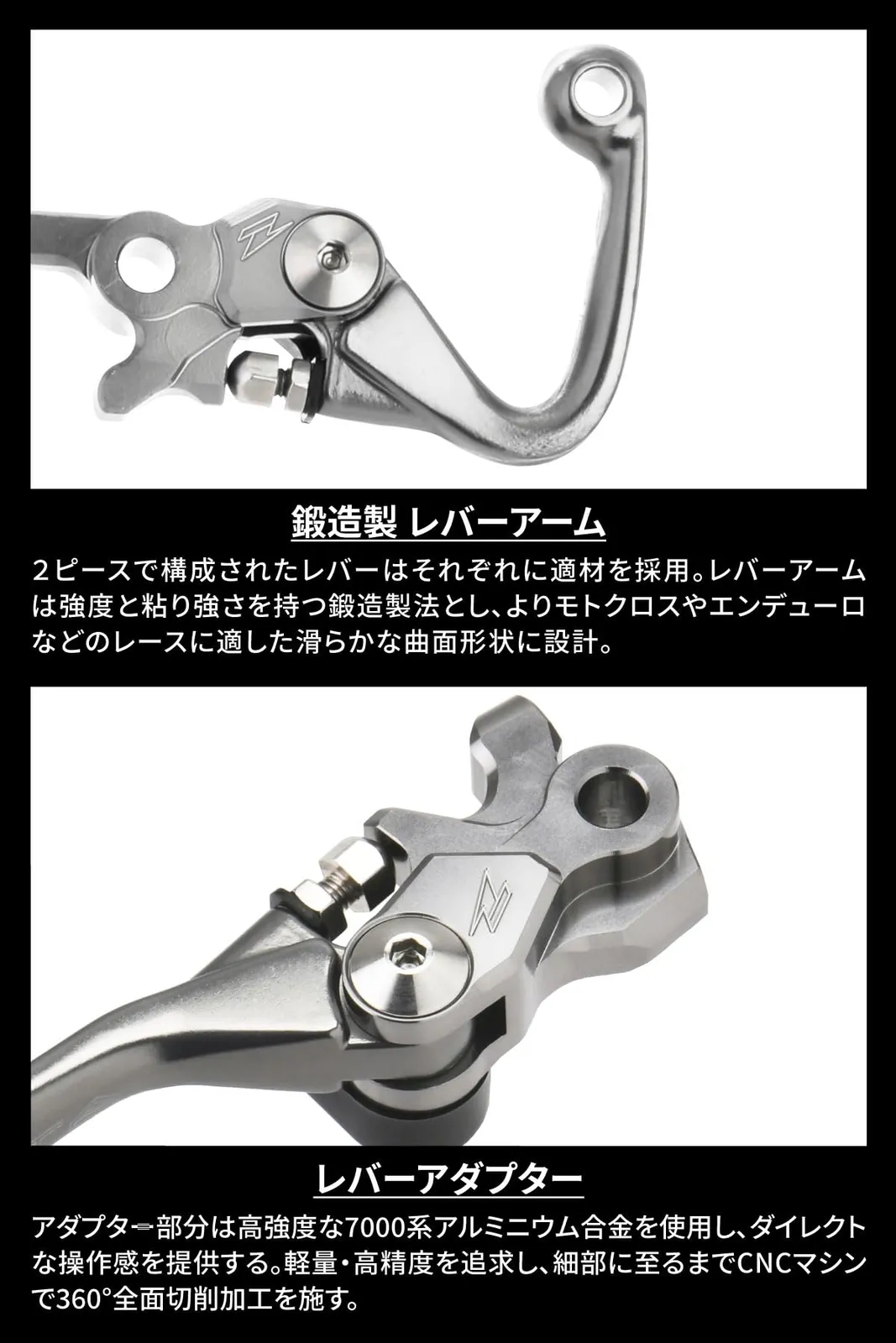 レバーアームを鍛造製法による滑らかな曲面とし、モトクロスやエンデューロなどのレースにより適した形状に設計。