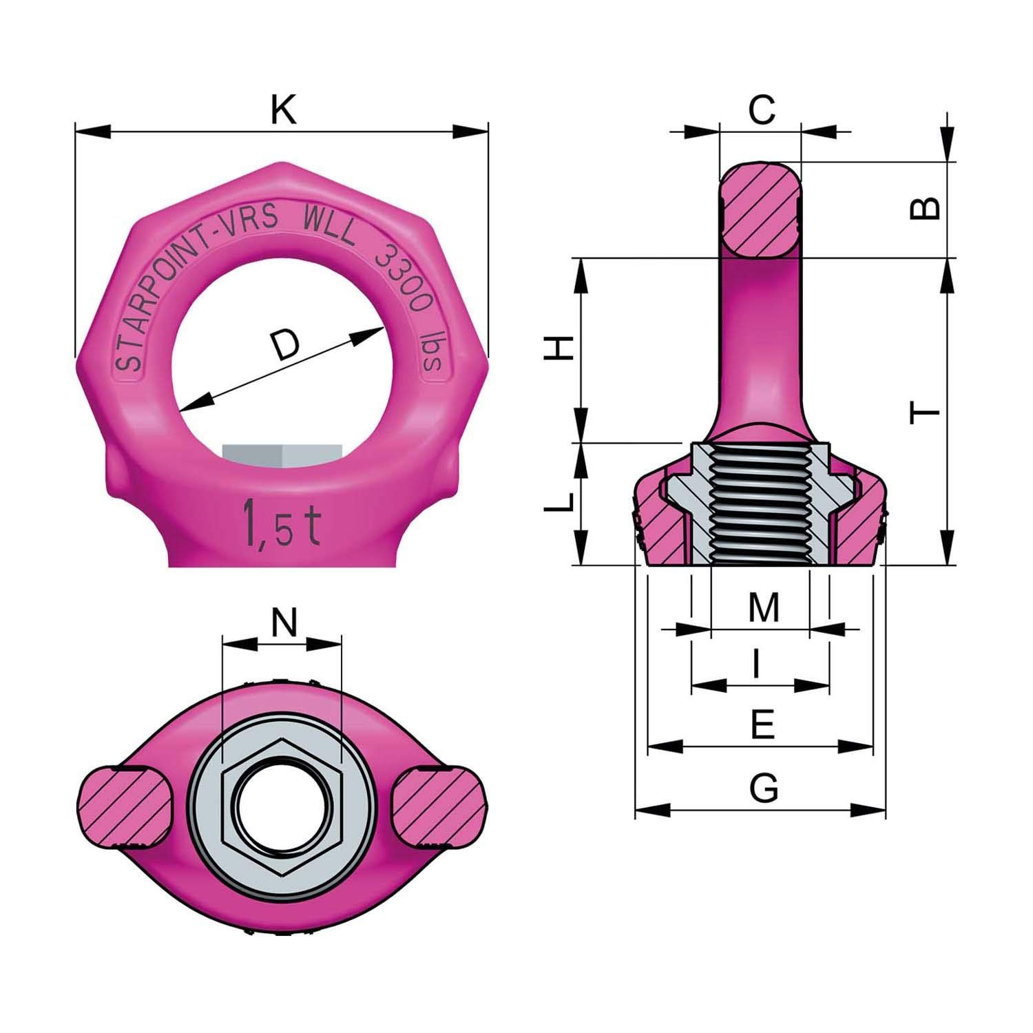ねじ部がナットタイプになっているため、相手面のボルトに接続し重量物の吊り作業用に。
