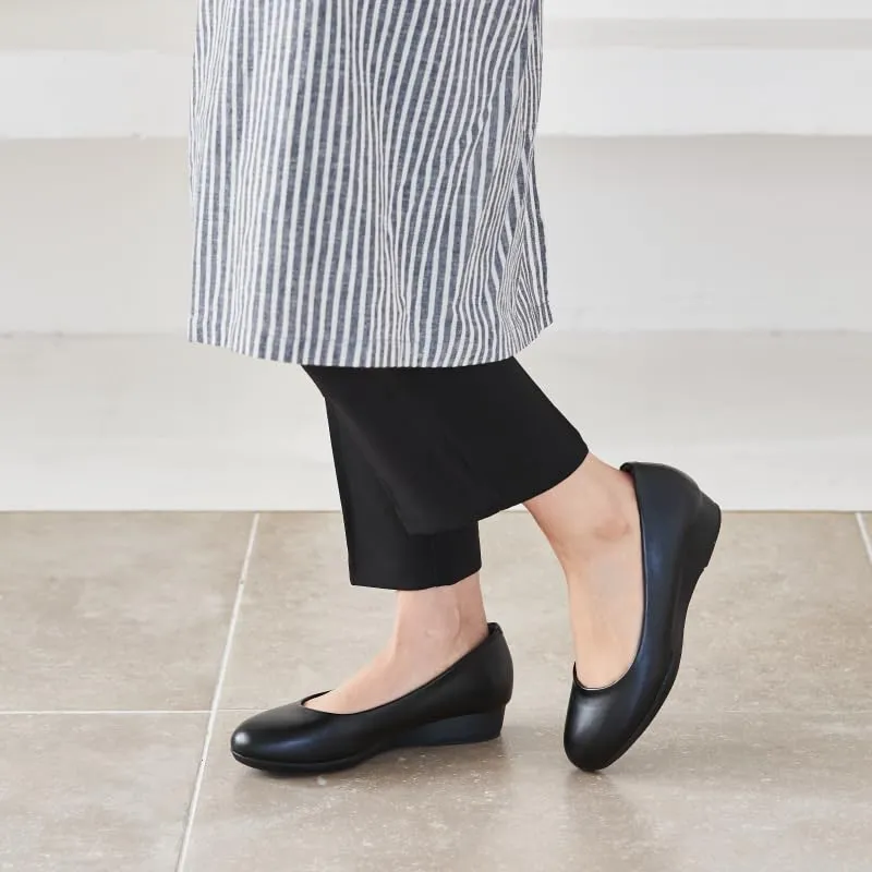 仕事で使用することを想定し、「きれいなシルエットとスニーカーのような履き心地」にこだわり、靴型から設計したウェッジソールシューズ!アウターソールにはE.V.A素材を用いることで軽量化に配慮!インナーソールにはもちもちした素材を採用し、やわらかい履き心地を実現!また、つま先に消臭繊維MOFFを搭載し、気になるニオイにも配慮! ブランド紹介