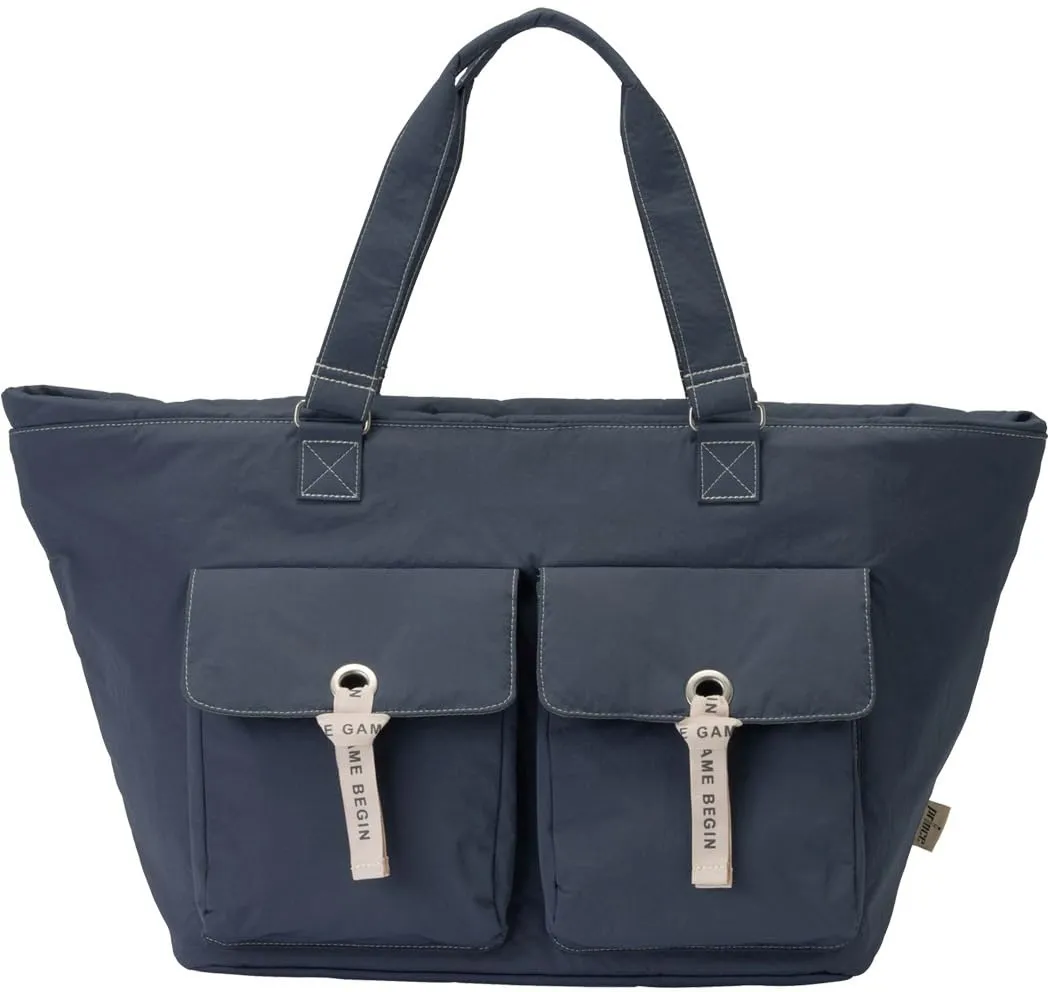 女性らしいニュアンスカラー、柔らかい風合いとフロントリボンがアクセント。容量も確保した使いやすいトートバッグ。※本体生地はワッシャーナイロンを使用しておりますので、表面のしわ感が特徴となります。