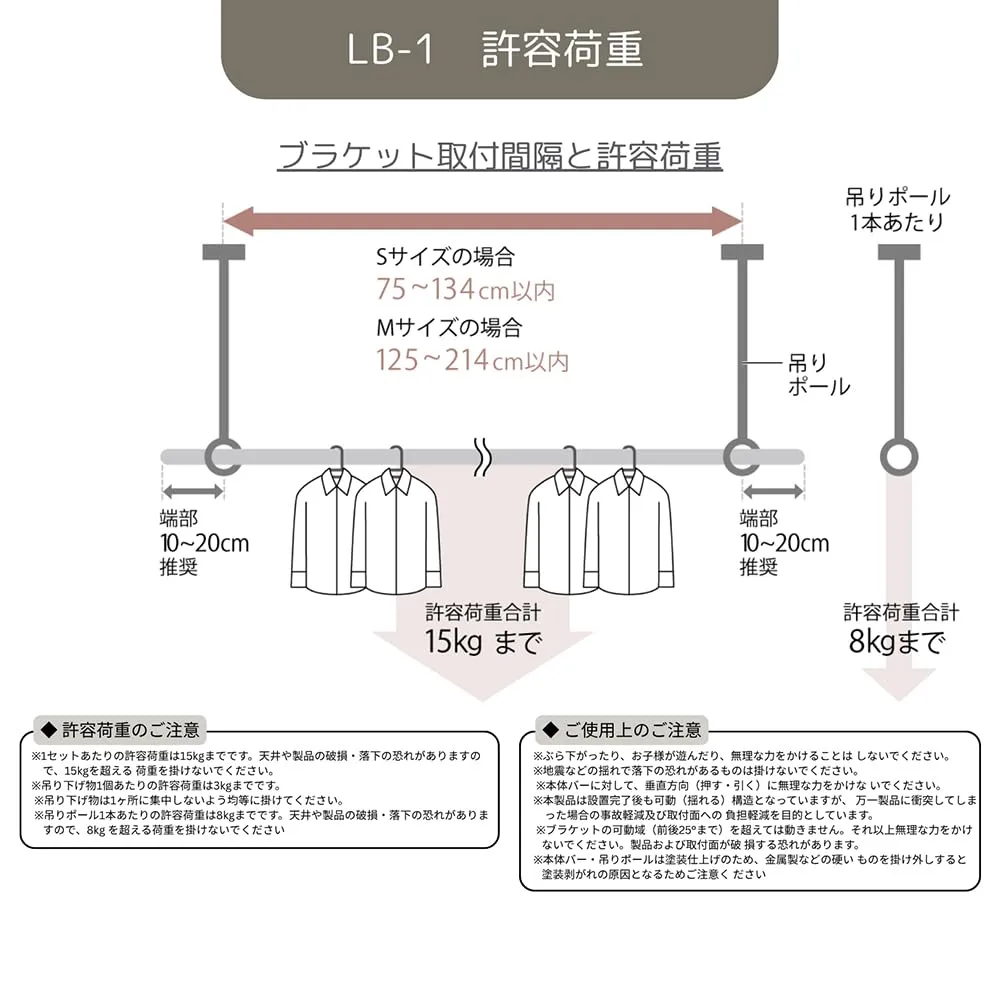 【セット内容】本体バー1本、ブラケット2個、吊りポール2本、取付ネジ(ナベ3.5×35mm)