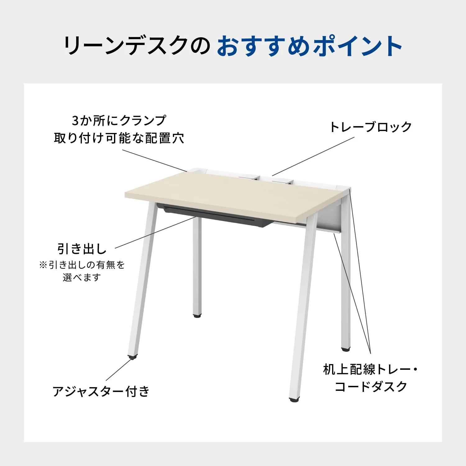 【商品特徴】小規模オフィス向けのミニマムな機能に、明るく軽快なデザインを採用した通販専用デスク
